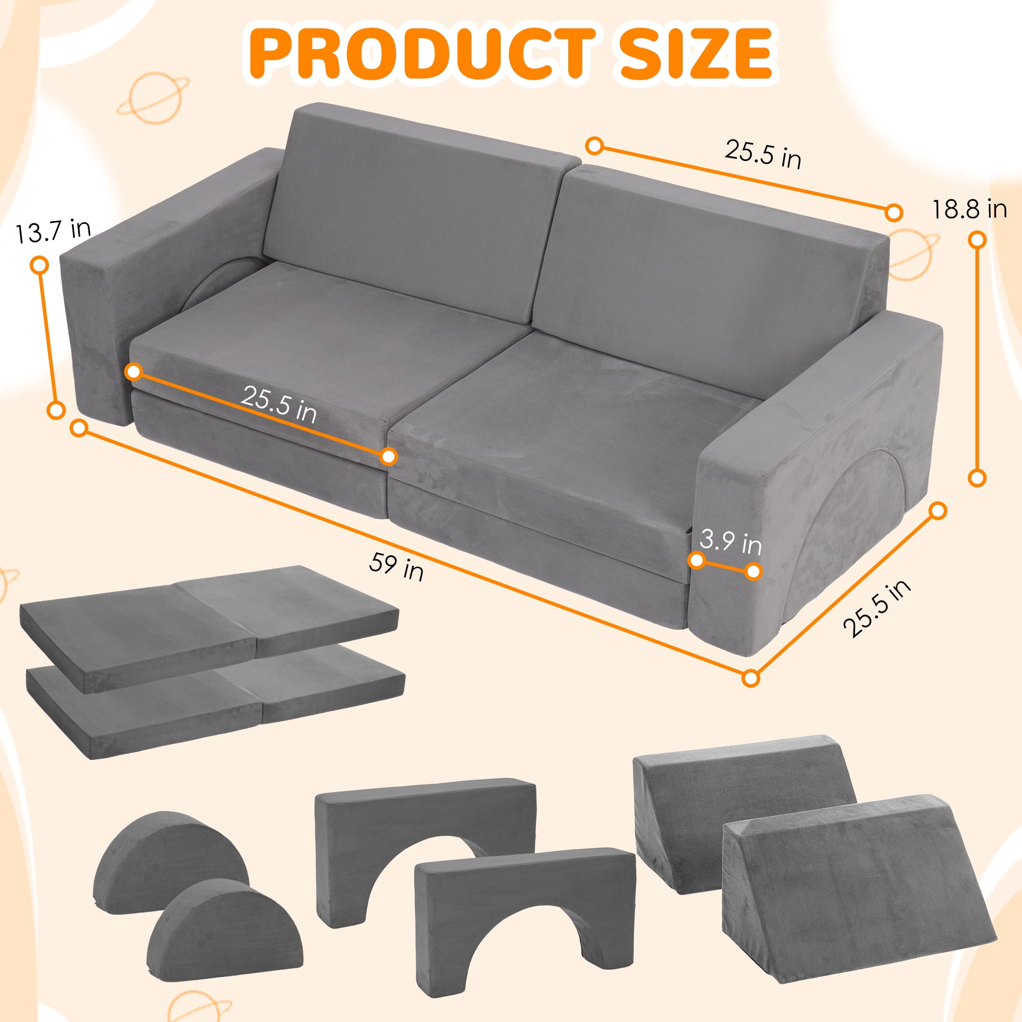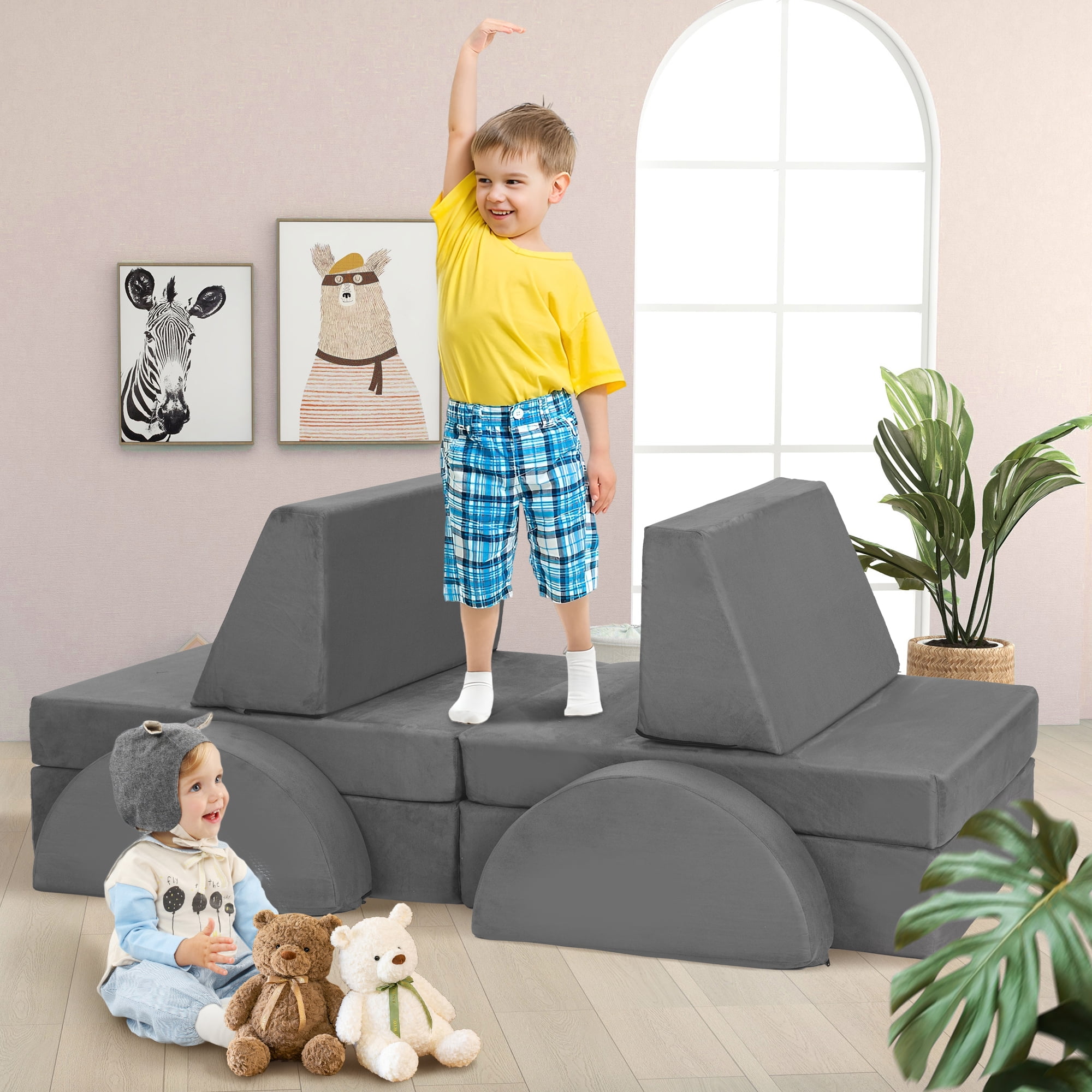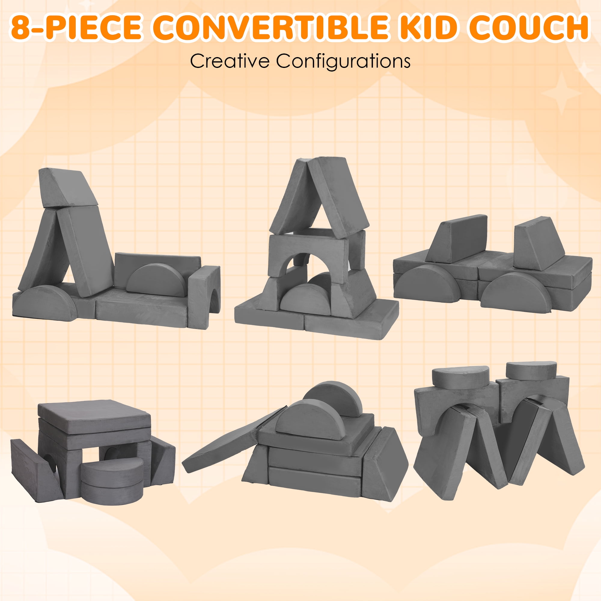 Modular Kids Play Couch For or Playroom, 8pcs Toddler Play Couch Sofa, Kids Couch Building Fort for Boys and Girls Bedroom, Children Convertible Sofa Foam Couch