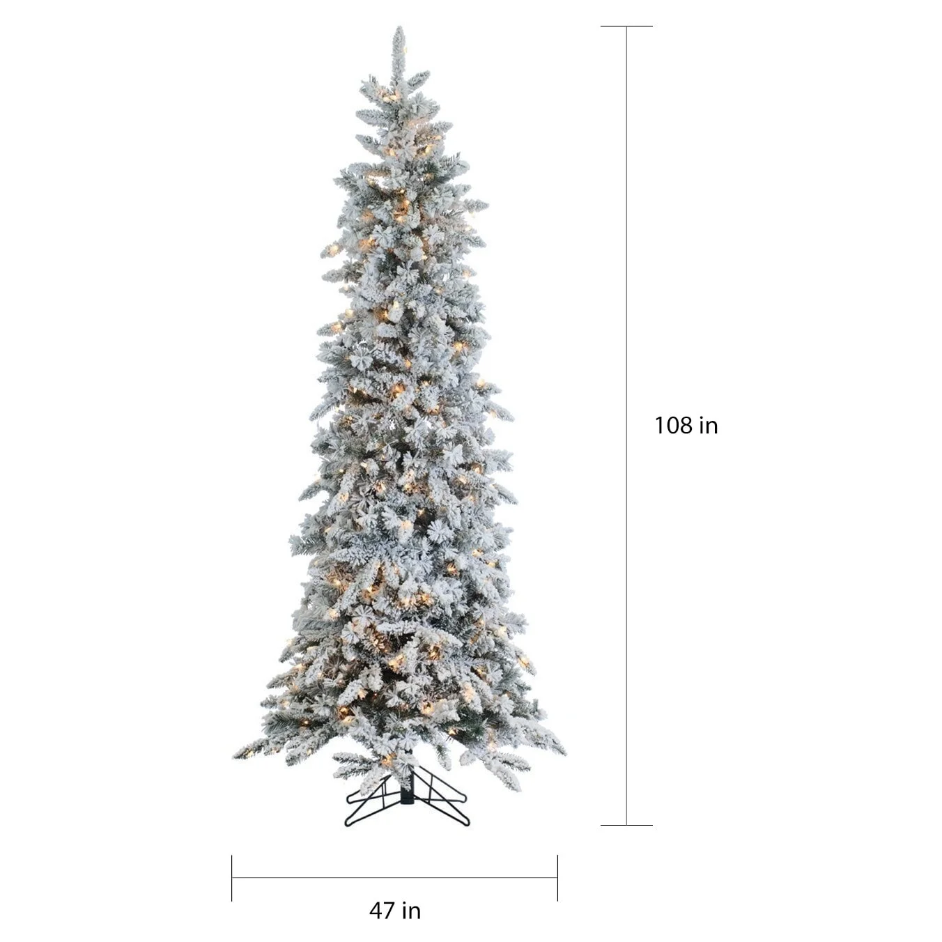 9 ft. Pre Lit Clear Incandescent Narrowed Flocked Pencil Pine
