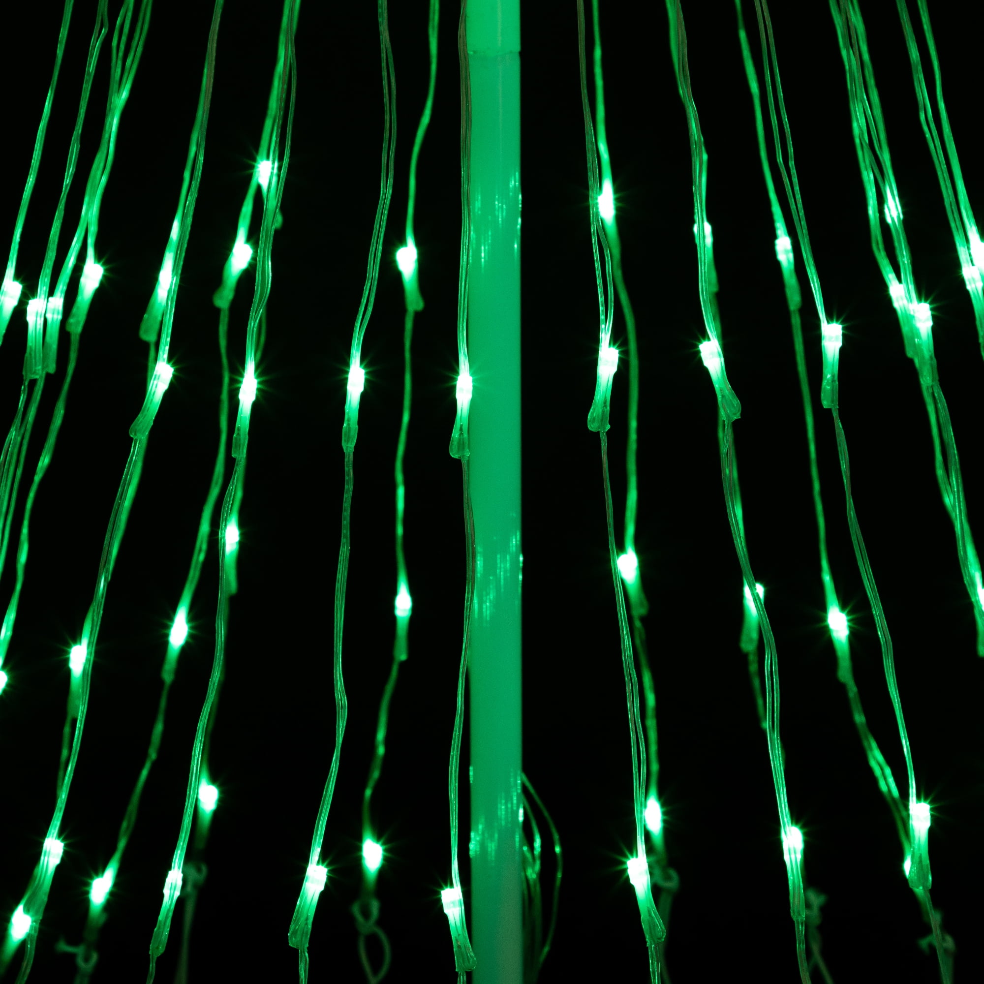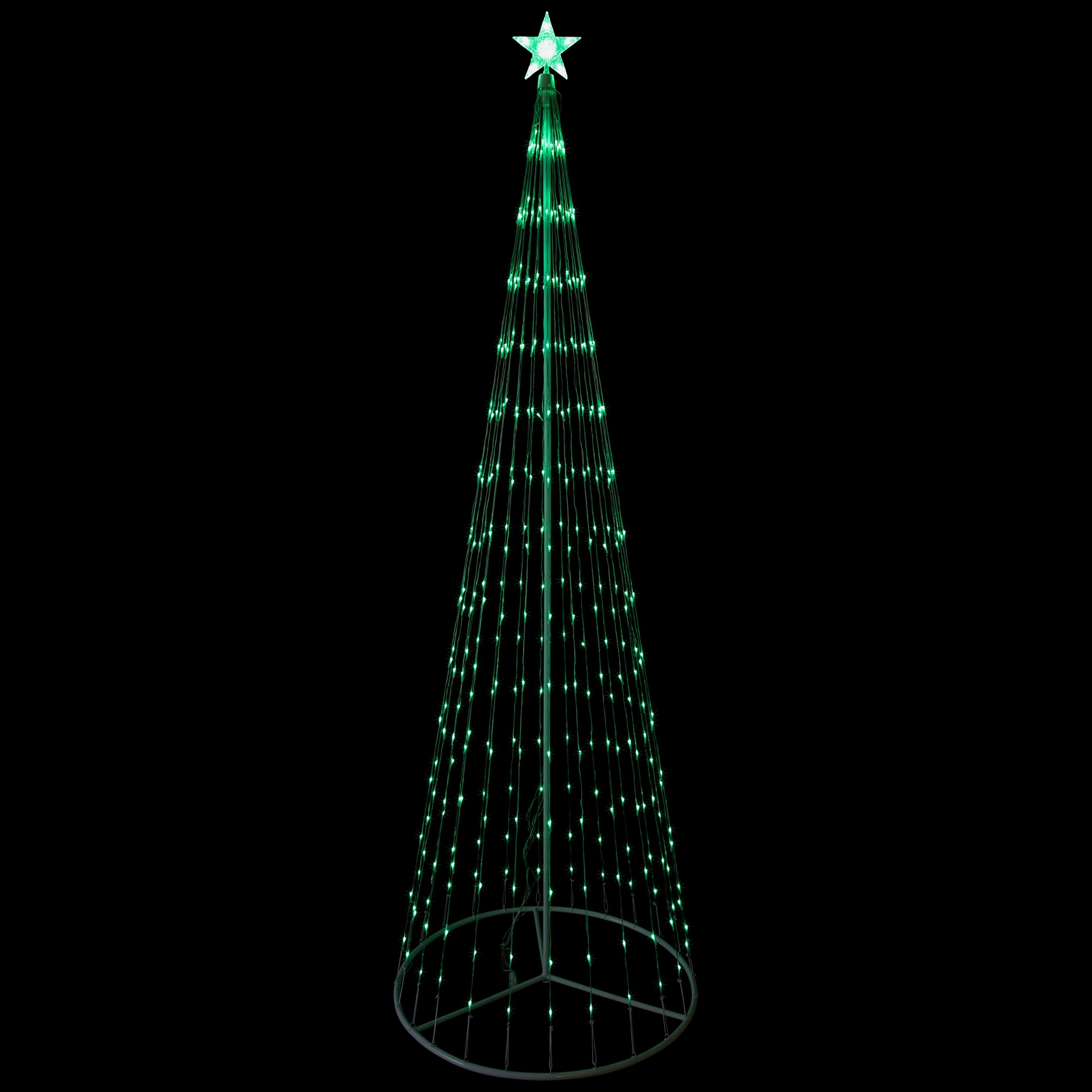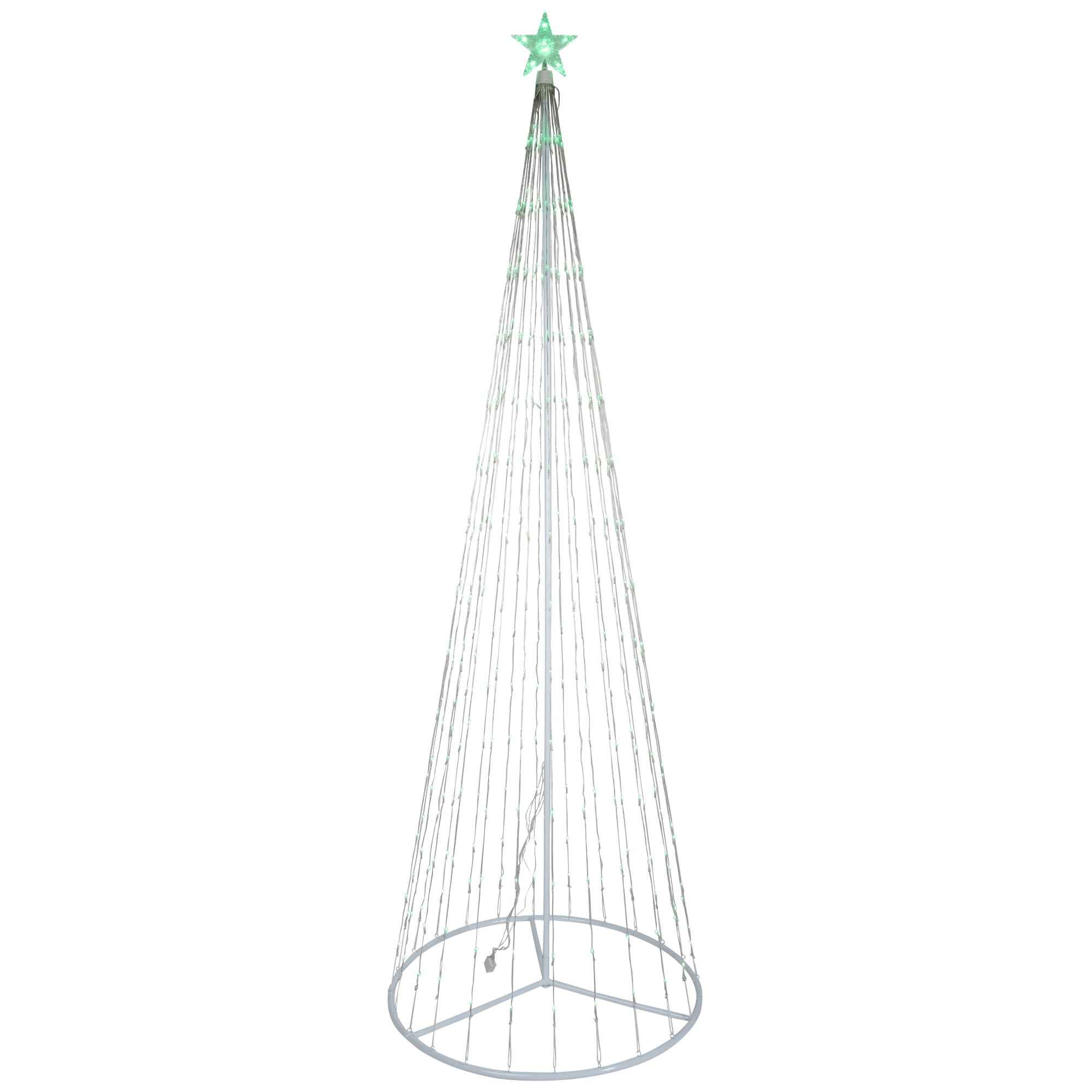 Green led lighted Christmas tree show cone decor Cycles through 9 dazzling lighting effects; 4 pieces easy assembly 9 foot black lead cord; white metal frame and stand