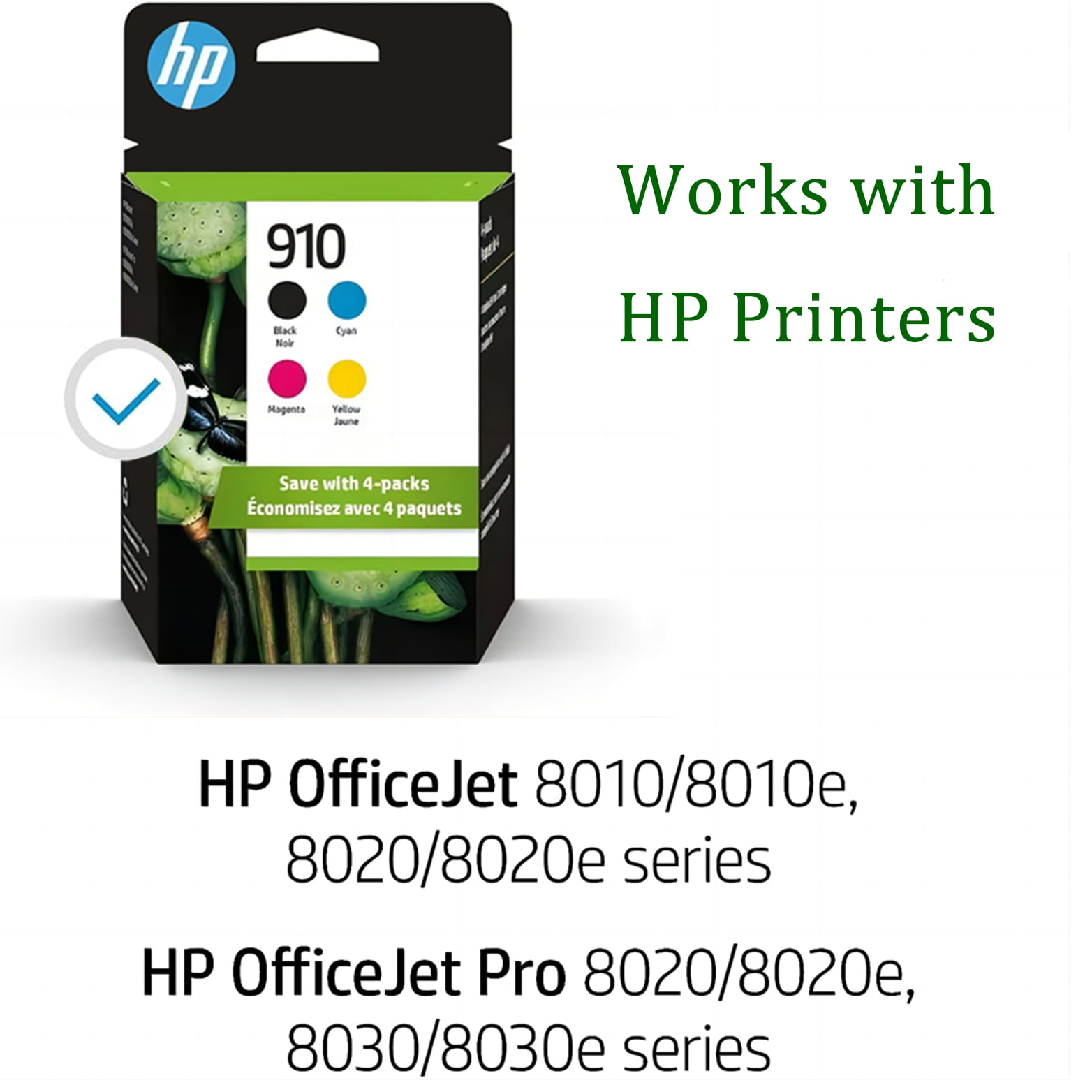 910 Ink Cartridges for HP 910 Ink Cartridges Combo Pack for 910 HP Ink for HP Printer Ink 910 – 4 Pack, Black, Cyan, Magenta, Yellow