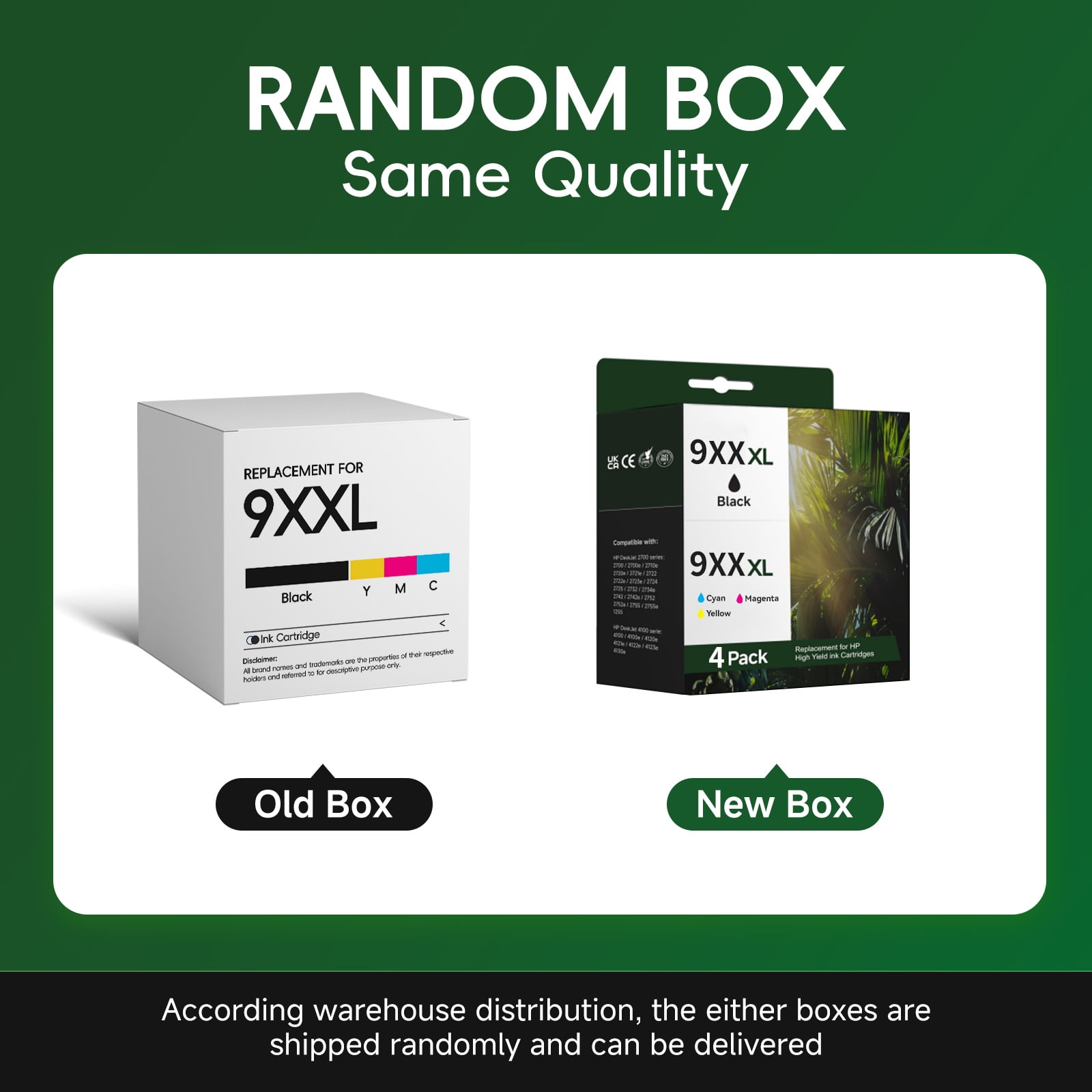 4-Pack 910XL ink cartridges replacement for HP 910 910XL ink cartridges (Black Cyan Magenta Yellow) Package Contents: 910 XL black ink cartridge x 1 / 910 XL cyan ink cartridge x 1 / 910 XL magenta ink cartridge x 1 / 910 XL yellow ink cartridge x 1 Compatible For Printer: HP OfficeJet Pro 8020 / 8025 / 8028 / 8035 ; HP OfficeJet 8010 / 8015 / 8018 / 8022 (Notice: Our 910 ink cartridges are not compatible with *e series printers with HP+ service. Please confirm your Printer Model before purchasing.) High Page Yield: 825 Pages per 910 Black Ink Cartridges,825 Pages per 910XL Color Ink Cartridge(5% coverage)