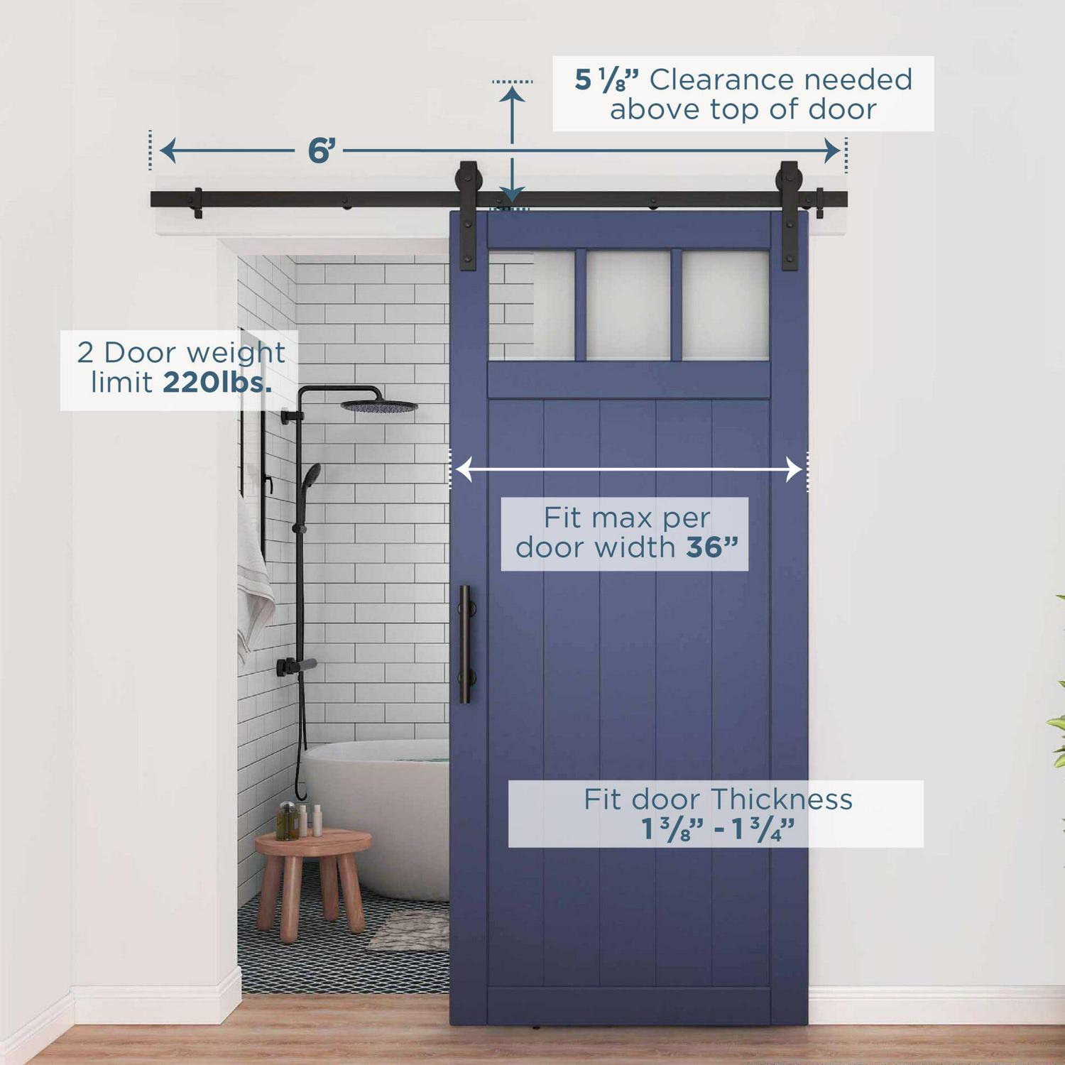 928 72″ 2 piece Classic Interior Barn Door Kit – Matte Black