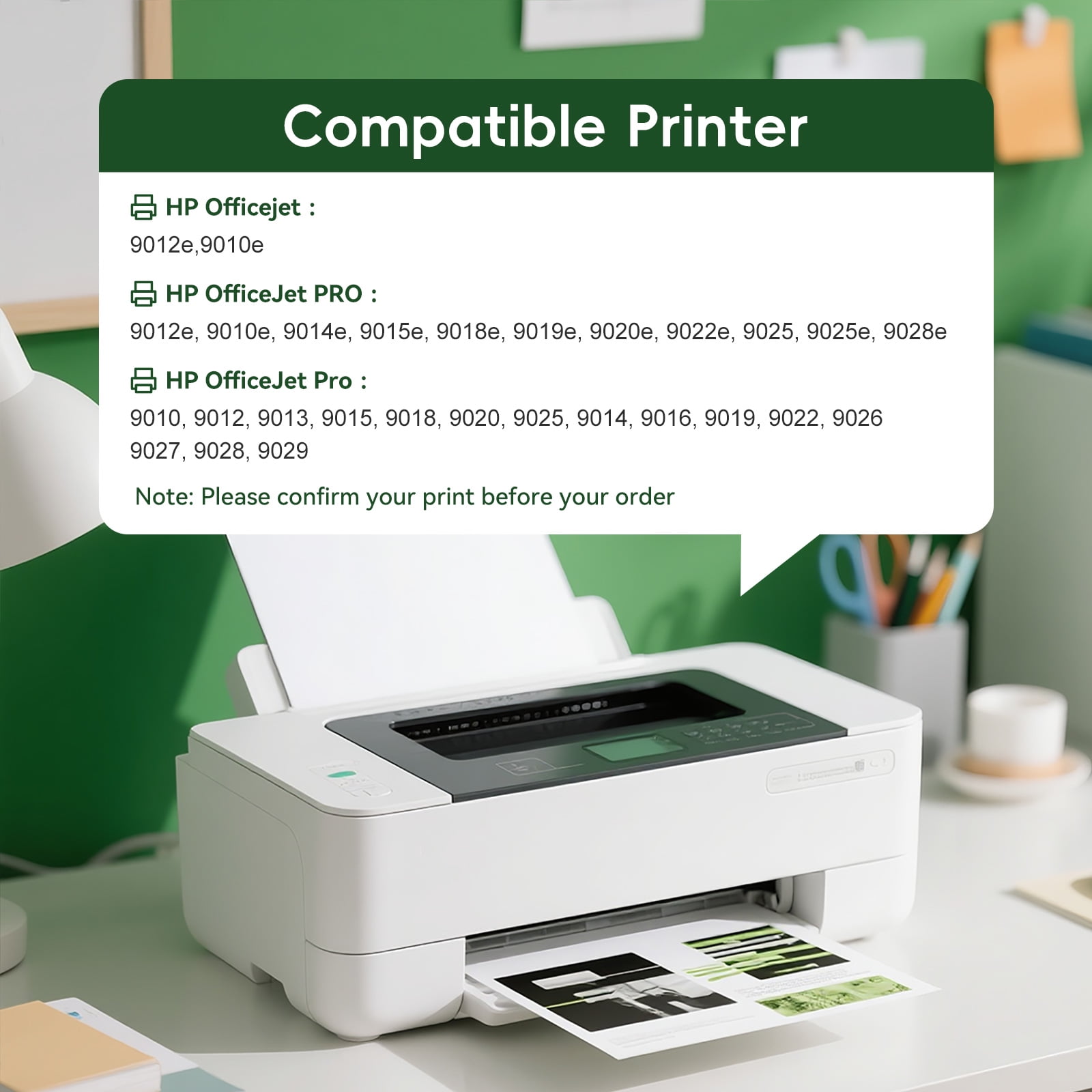 Work with Printers:HP OfficeJet Pro 9010, 9012, 9015, 9016, 9018, 9019, 9020, 9025 What’s in the boxs: Standard HP 962 ink cartridge Combo Pack -black, Cyan, Magenta, Yellow . Designed to conserve:Easily recycle your cartridges at no charge through HP Planet Partners. Reliable performance:Designed to work with your HP printer for optimal quality and reliability.Achieve outstanding performance and high-quality prints at fast speeds with HP proprietary inks.