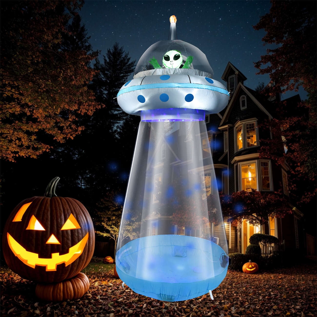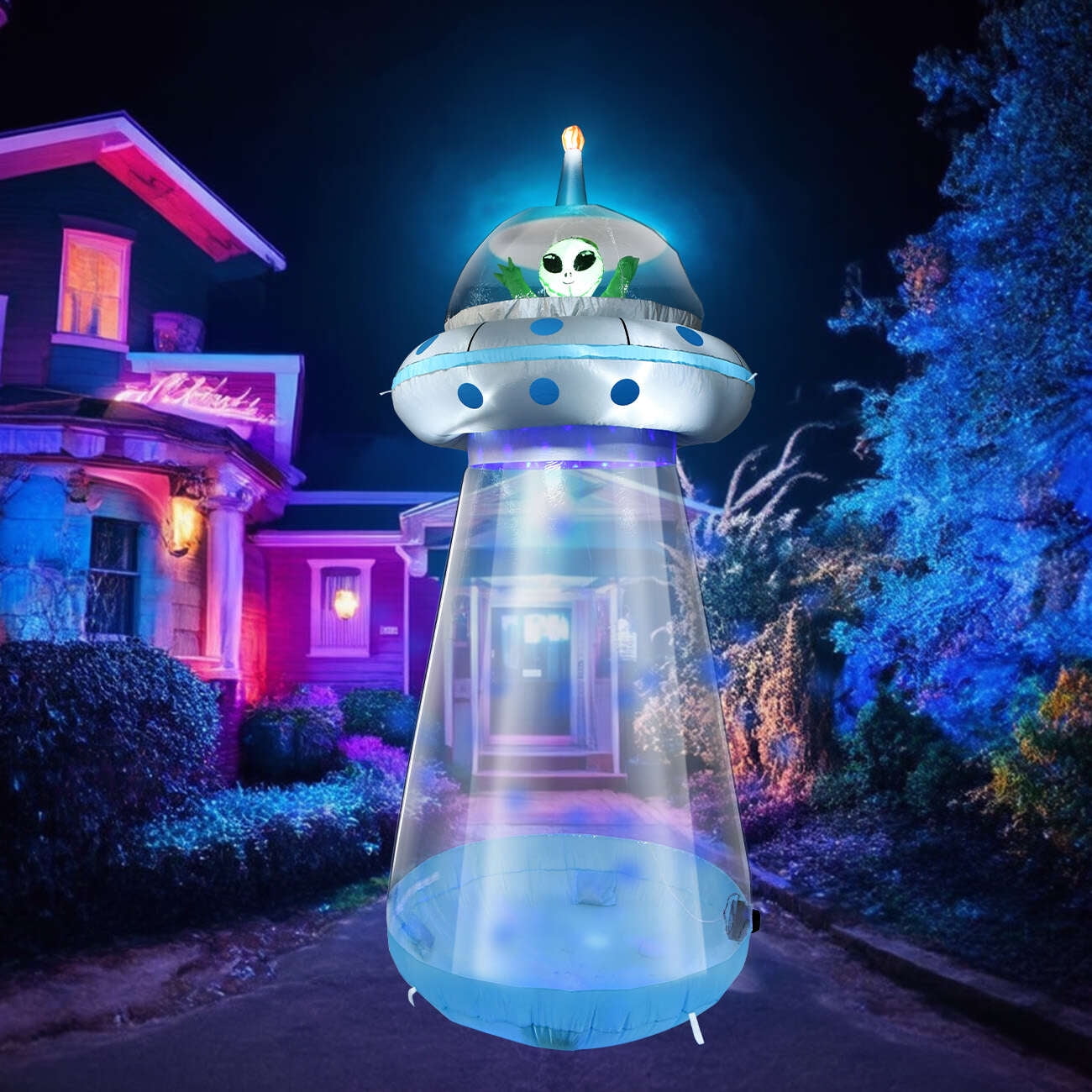 Our alien ufo halloween blow up decoration is ideal for Halloween outdoor indoor decoration, yard garden decoration, trick or treat event decoration, Halloween night events. Alien blow up decorations be a perfect alien party decorations for outdoor indoor, which can easy create fantasty alien theme atmosphere and bring joy at the alien party. Halloween inflatable alien ufo with green LED lights and blue flash effect.The novetly design and fancy lighting effect will create amazing glorious decor effect outdoor and indoor.
