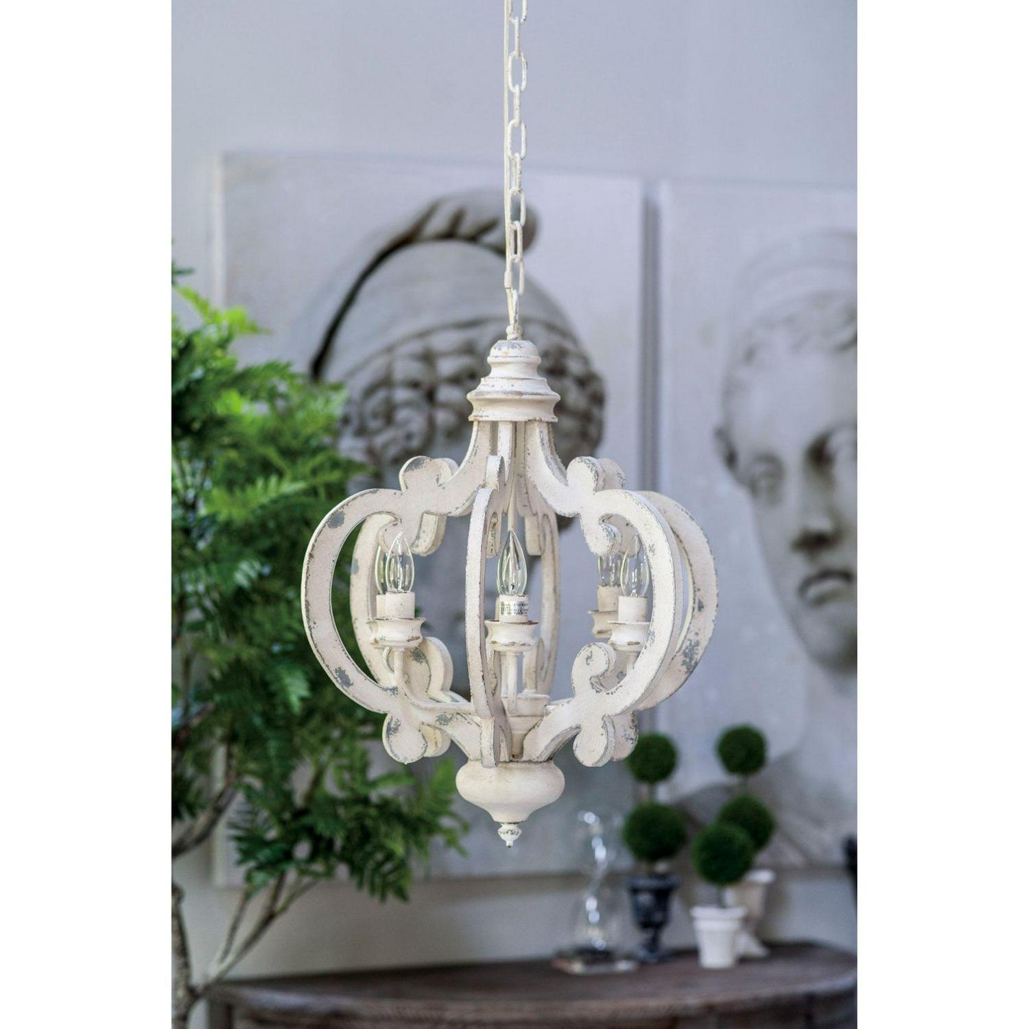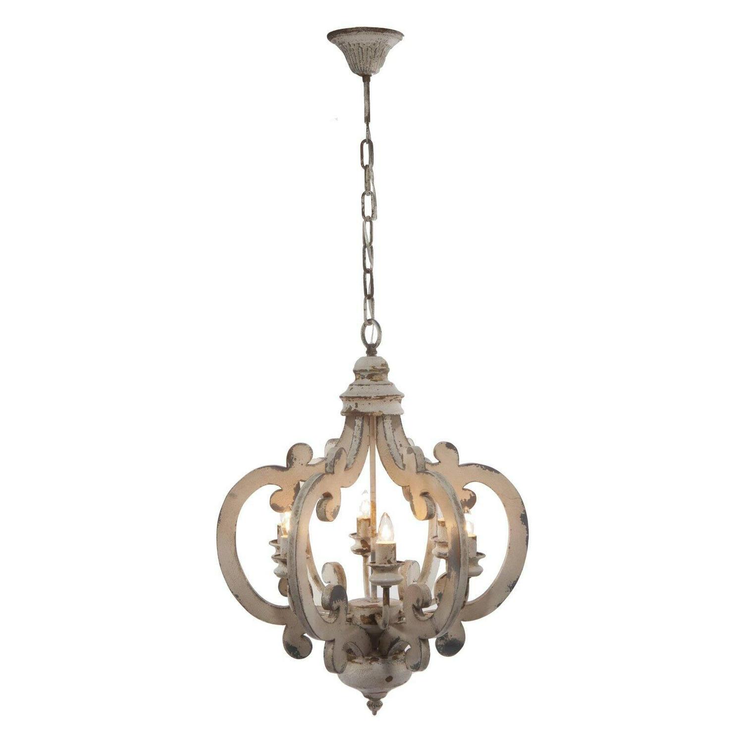 Add the A&B Home Group Inc White Washed Chandelier to your home for an antique, on-trend look. This chandelier is handmade from solid fir wood with iron accents, and boasts a distressed white finish that will look great almost anywhere. This light casts a soft, romantic glow with six E12 60-watt light bulbs, not included.