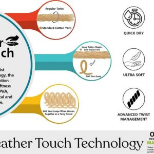 – FEATHER TOUCH & QUICK DRY TECHNOLOGY: Feather Touch gives long lasting softness without use of PVA. Quick dry technology ensures incredibly absorbent construction and weaves through Zero twist loom making these towels ultra-absorbent. Low Lint helps prevent shedding and Fade Resistance helps this towel maintain its color through washing.