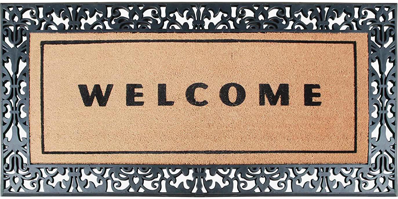 – NEWLY DEVELOPED RUBBER AND COIR FLOCKED MOLDED DOOR MAT: This is a completely newly designed door mat, suitable for both single and double doors. The large size door mat is made of Natural coir fiber and high quality rubber. This coir door mat has a large coir area to clean and wipe your shoes which keeps your house clean. Molded door mats are stronger and more durable lasting thrice as long as regular door mats. Each outdoor rug is QC inspected for 20 quality check points. The WELCOME motif is Flocked with German machines and that enhances the complete look and also its life .