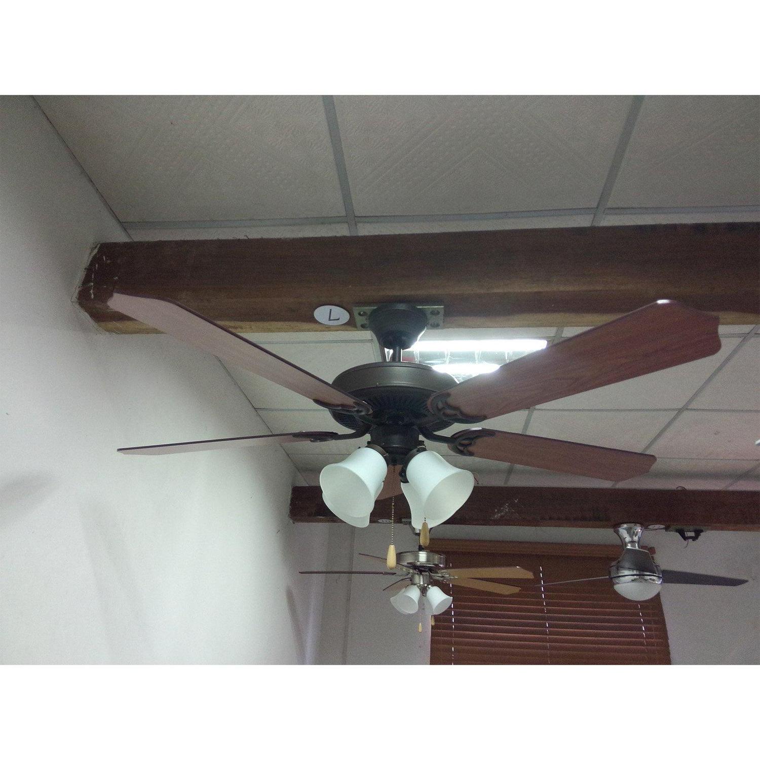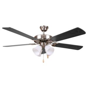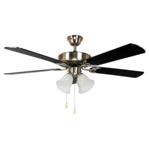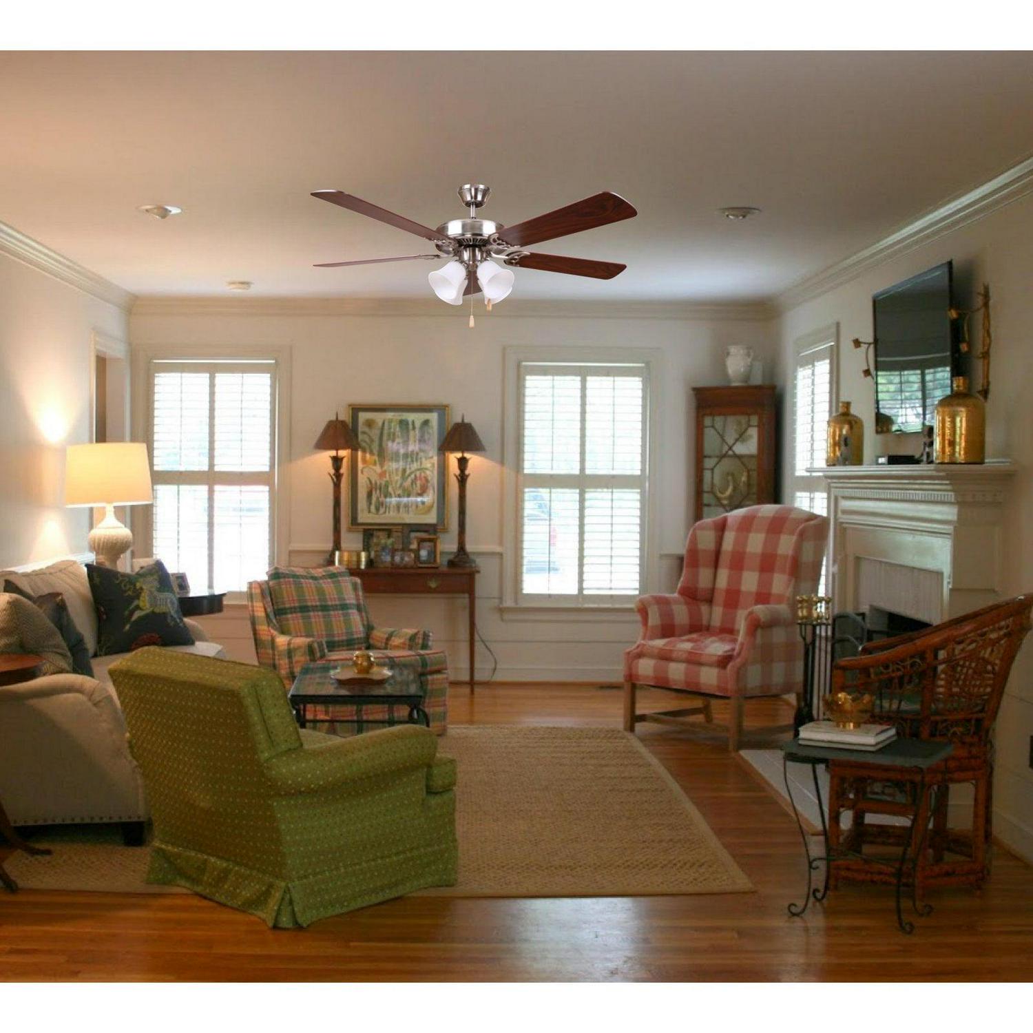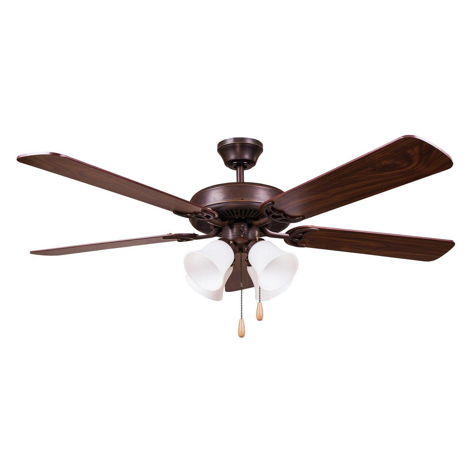 Complete any room with the transitional style AA Warehousing Harli 52 in. Indoor Ceiling Fan. Made with five durable plywood blades, this fan comes in your choice of available finish options. With a three-speed control and a convenient pull chain mechanism, this fan will keep you cool. Light kit included.