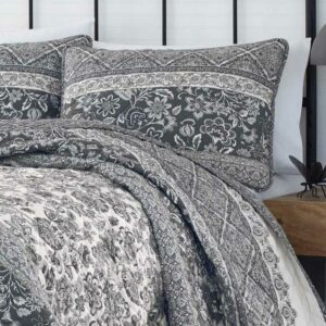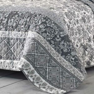 Wide bands of intricately detailed paisley and Jacobean floral patterns lend Provençal country flair to this soft and inviting quilt set. A classic palette of slate blue and white is perennially appealing and a diamond grid quilt stitch adds dimensional interest and additional comfort. The Stone Cottage Abbey quilt set is machine washable for easy care. Full/Queen quilt set includes: one 90 L x 90 W quilt and two 21 L x 27 W shams.