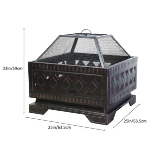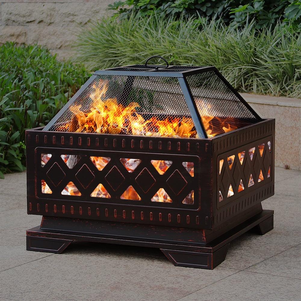 Abble 25in. Steel Square Wood Burning Fire Pit