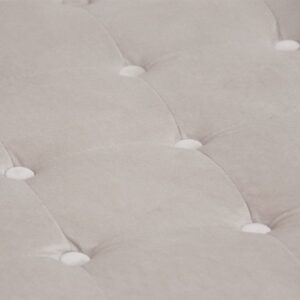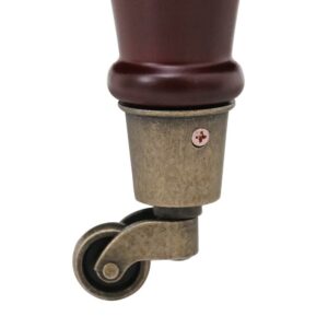 Add a hint of traditional style to your home with this elegant round ottoman founded atop four caster wheels in a bronze finish. Crafted from sturdy solid wood with low key velvet upholstery, this ottoman features a tufted seat design for an extra touch of luxury. Use this ottoman as a footrest, an extra seat, a surface to place items such as magazines and serving trays or an accent piece to complement your decor. This ottoman is large enough to offer extra seating for guests as well.