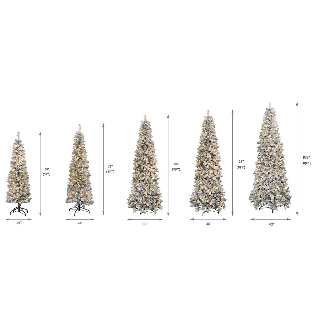Abble 5FT Snow Flocked Artificial Slim Pencil Christmas Tree with LED Warm White Lights and Metal Stand