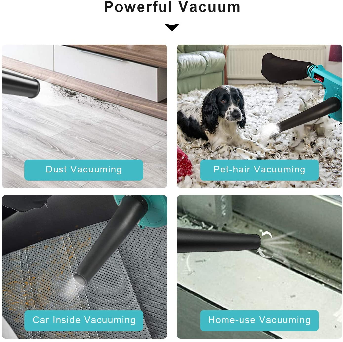 Portable Cordless 2-in-1 blower & Vacuum: This blower weights only half even less than other blowers, which make it effortless to using in for a long time. 2 in 1 design not only help you to clean the garden of fallen leaves, snow; but also can clean the corner and gap which is hard to clean. Perfect for courtyard, garage, the car inside and engine compartment etc. Super Strong Wind: Turbofans &all-copper motors provide up to 18000r/min strong power, keep running at top speed for 20 minutes. It’s easy to blow up wet leaves, snow on your car, and make your garden keep clean after a rainy day.Cordless design allows you to clean up anywhere wanted. Instantly Becomes a Vacuum Cleaner: As long as the blow tube installed in the air inlet, put the garbage bag at the air outlet, the blower will become a vacuum cleaner immediately. Super strong suction allows you to absorb dust, pet hair, crumbled cookies, biscuits much more easily than besom. It is effortless and convenient to clean. Fast Charge & Power Indicator Light: It only takes 60 minutes (2 times as fast as normal) for a full charge. Full charged battery make it enough to clean up the house , garden and car. Power indicator ensures you to get the battery level at anytime, avoid the embarrassment of battery draining at work. Support Service: We are confident that our docking are manufactured under strict quality standards to give our customers best experience. If you have any problem during use, please feel free to contact us! We support 15 Days Return and 3 month Warranty. Specifications: Type: Cordless Blower+For Makita 18V 6.0Ah Lithium-Ion batteries Color: Blue No-load Speed: 0-18000r/min Air Volume: 2.8m³/min Function: Suction + Air blowing Compatible Battery: For Makita 18V Lithium-Ion batteries(Not Included!) Package Included: 1 x Electric Air Blower Vacuum Cleaner (Comes with the blowpipe & dust bag) 1 x 18V 6.0Ah Lithium Battery For Makita BL1850B