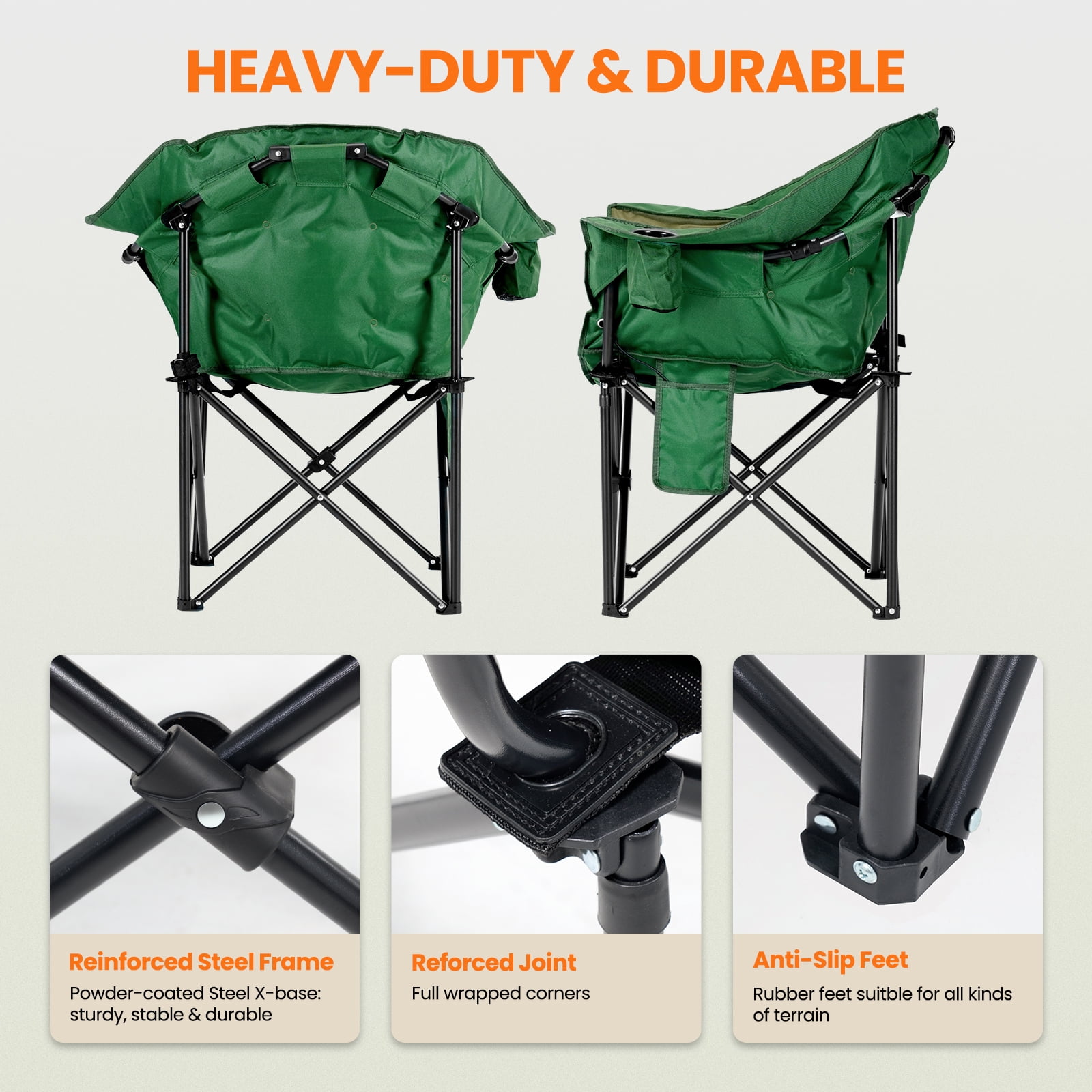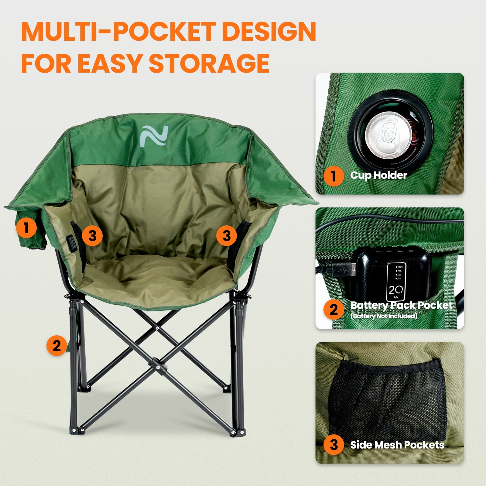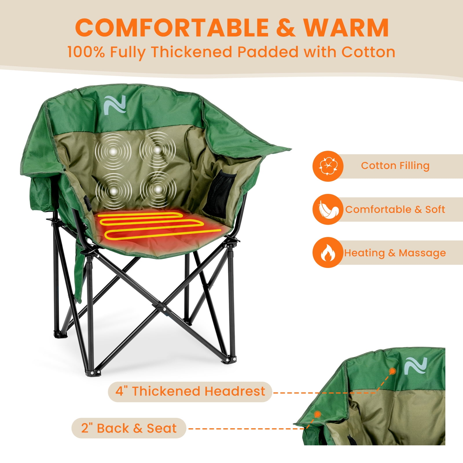 ABORON Padded Heated Massage Camping Chair Adult, Outdoor Folding Chair with 3 Heat Level & Back Massage, Heated Patio Chair Portable Heavy Duty Arm Chair, Support Up to 400lbs, Battery NOT Included