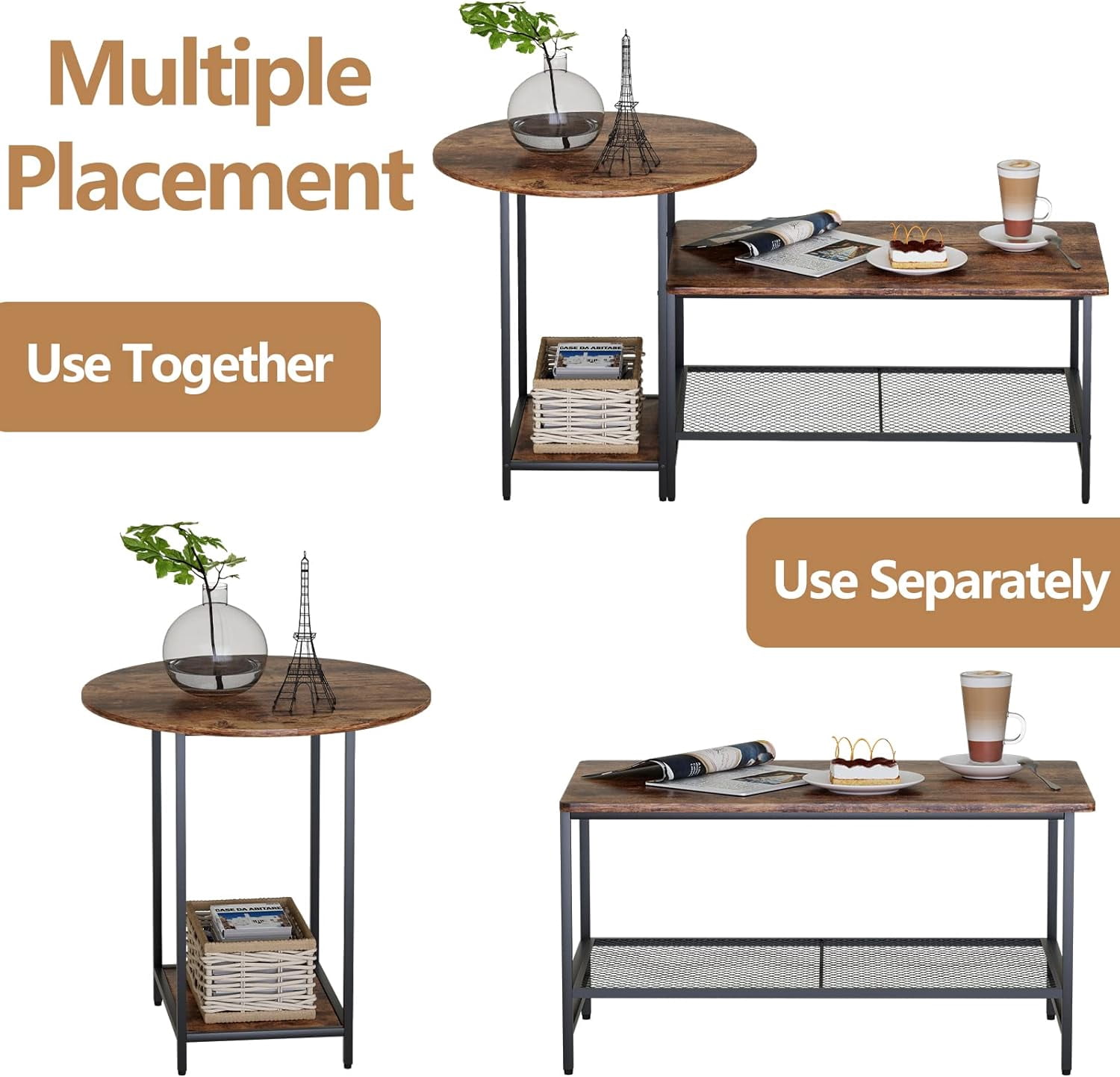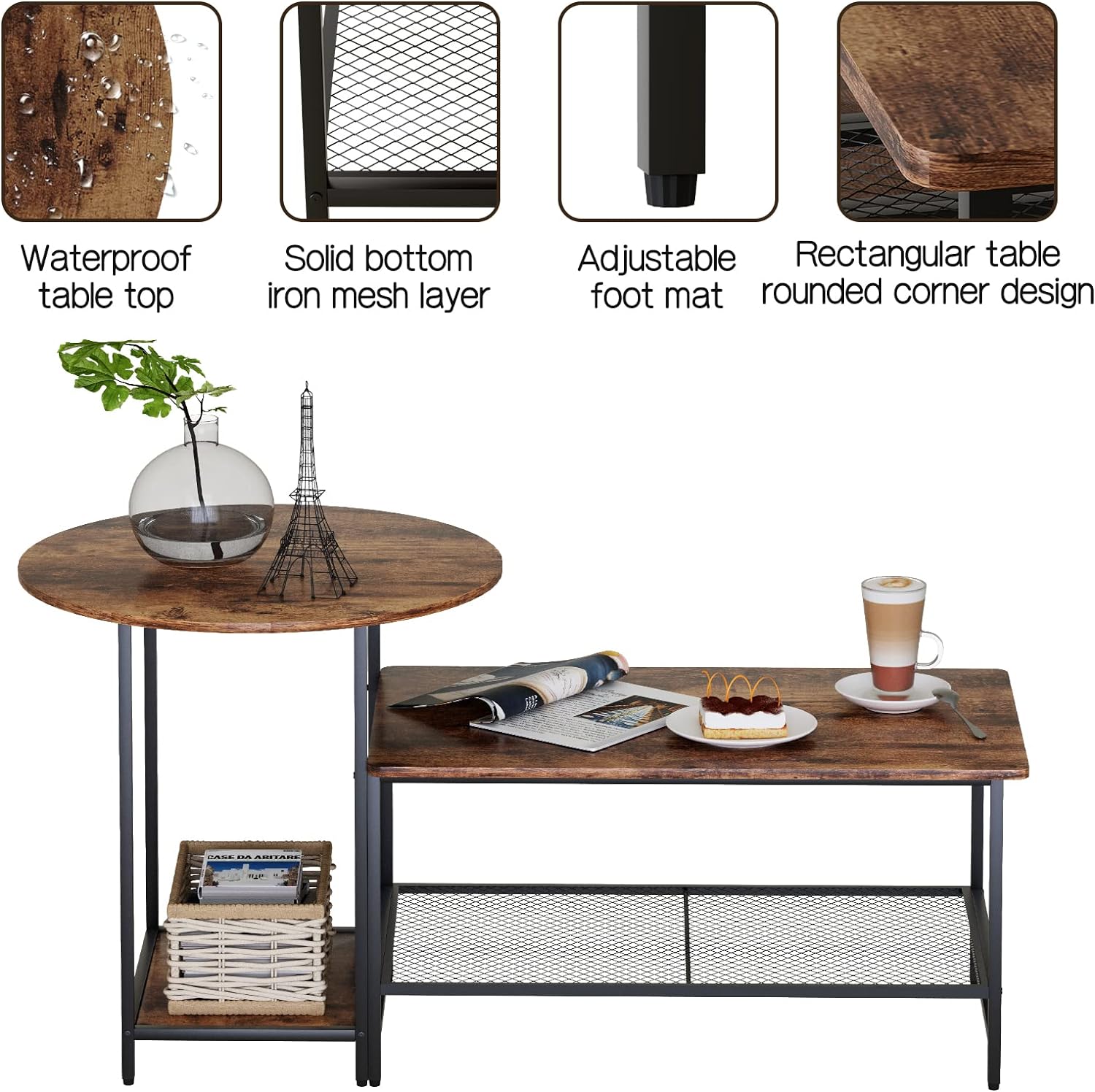 Specifications: Round Table: 23.6 x 23.6 x 23.6 inches Rectangle Table: 31.4 x 17.9 x 15.7 inches Colors: Black Marble/Rustic Brown/White Marble Materials:Steel Frame & MDF Board Huhote Nesting Coffee Table Modern Rustic Brown Round and Rectangular Table SIMPLE DESIGN The modern and fashionable design is suitable for various styles of home decoration, which can effectively integrate any family and add elegance and fashion to your room. WIDELY APPLICATION It can be used alone or in combination to improve space utilization. Suitable for living room, balcony, dining room.