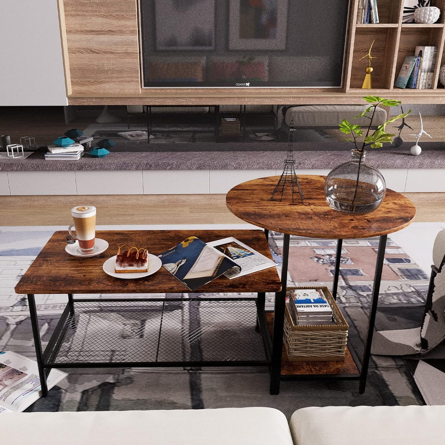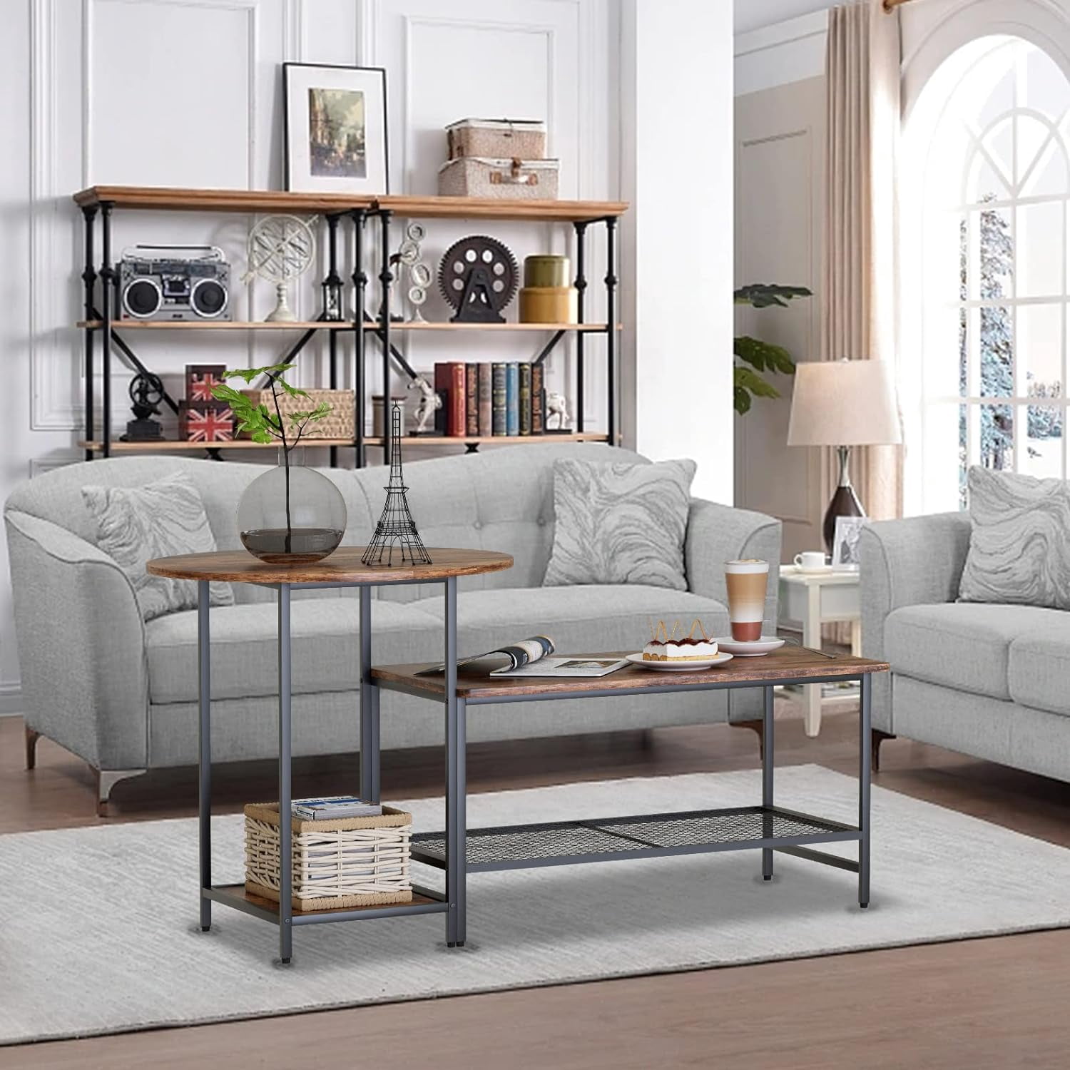 Aboxoo Modern 2-Piece Wood Coffee Table Set with Metal Legs, Rustic Brown