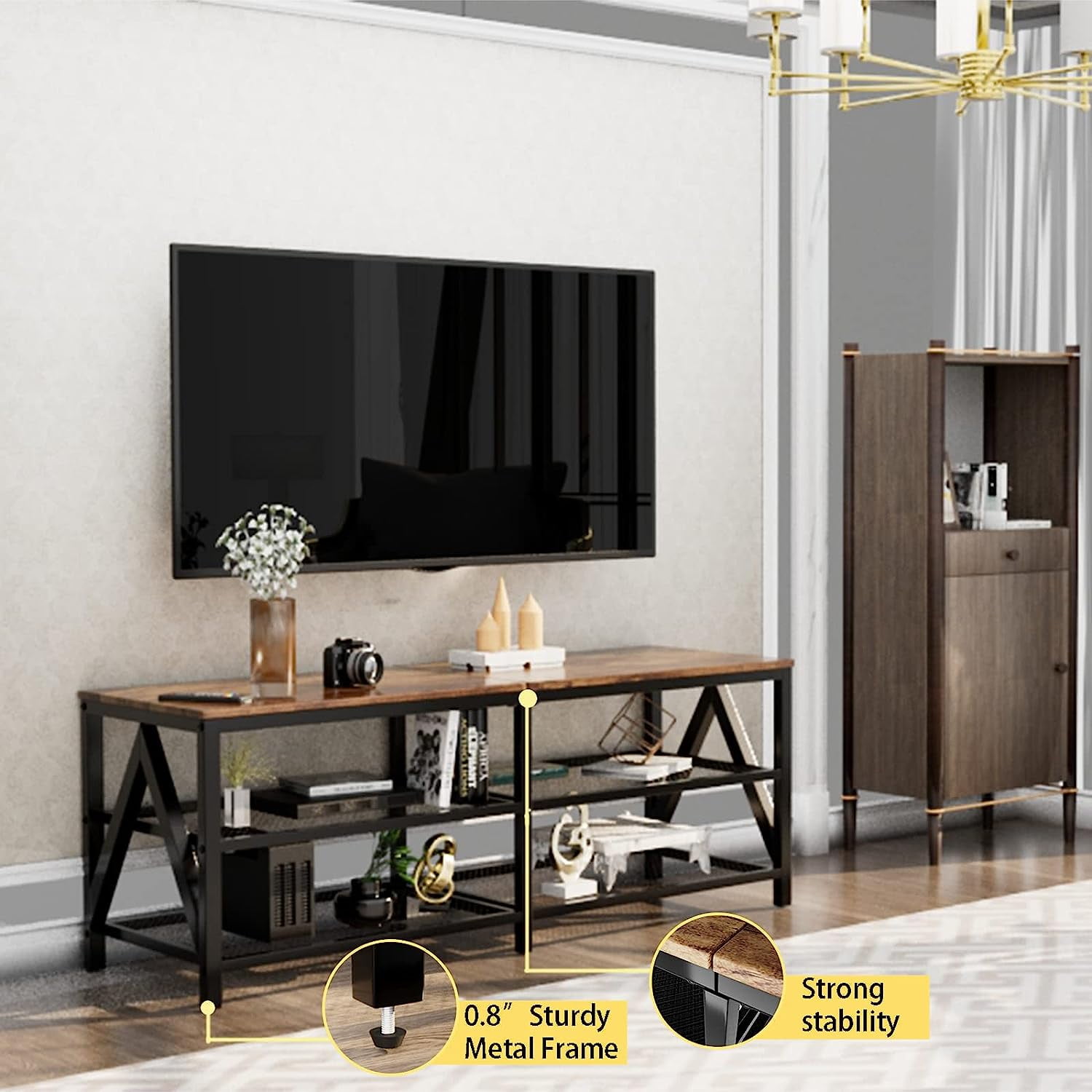 aboxoo TV Stand for 60 65 Inch TV, Long 55″ Entertainment Center 3-Tier TV Console Steel Frame Industrial Style TV Cabinet with Metal Frame for Living Room, Rustic Brown Wooden and Black