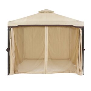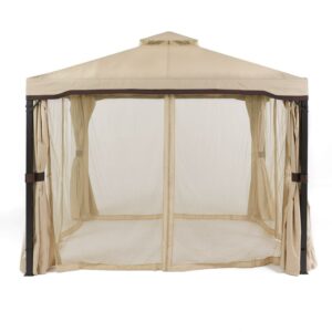 Abrams Outdoor Gazebo Canopy with Net Drapery, Beige
