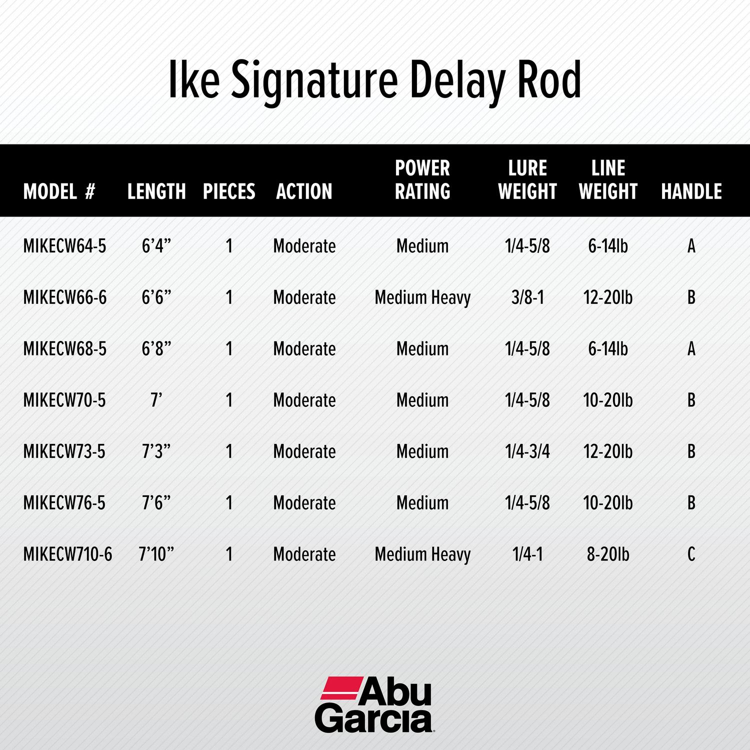 – ABU GARCIA IACONELLI SIGNATURE DELAY FISHING ROD 6 4 CASTING ROD: A balanced and lightweight rod designed, tested and approved by Mike Iaconelli for on-the-water performance and style.