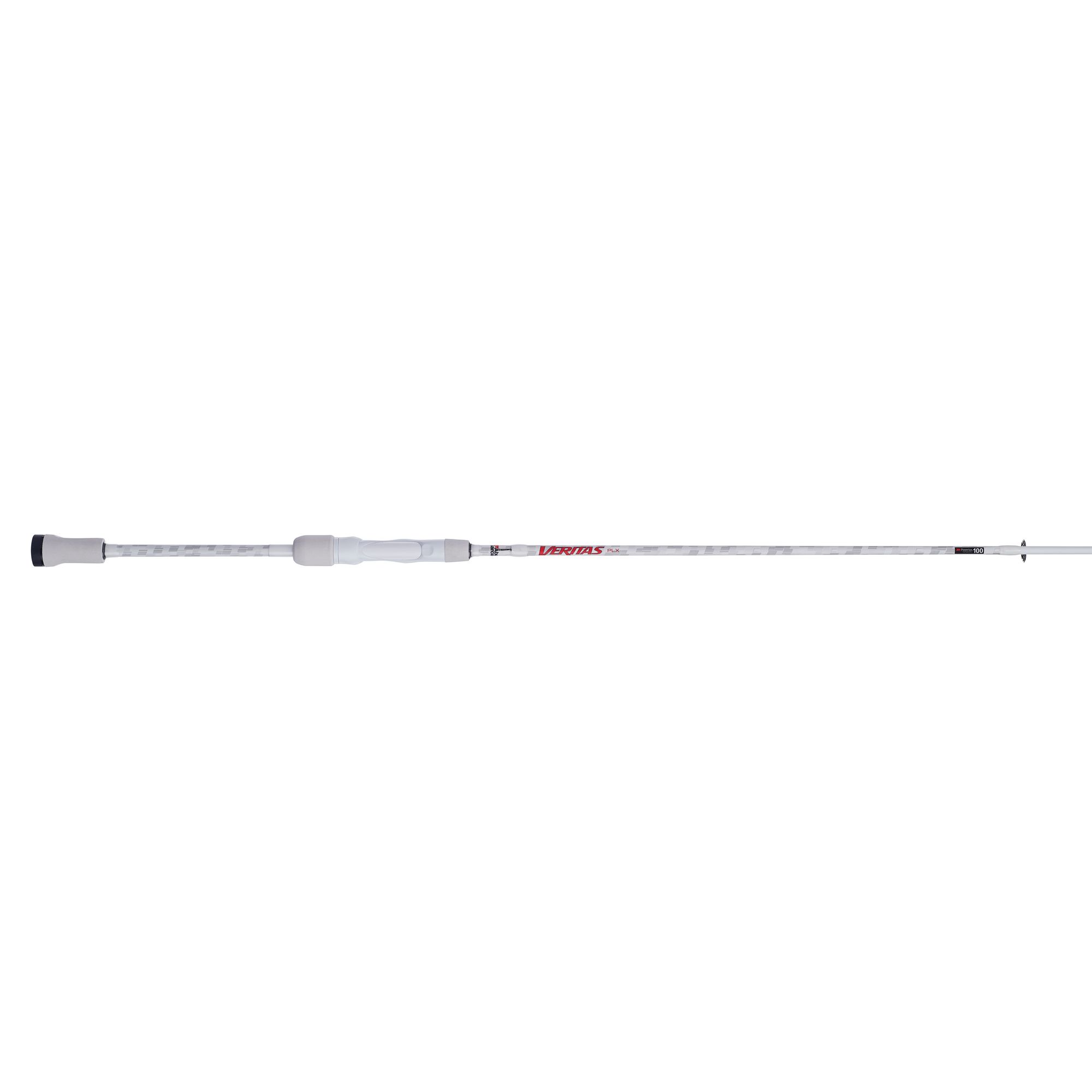 ABU GARCIA VERITAS 7’ SPINNING ROD: A balanced and lightweight rod designed for on-the-water technique and style. 8-14LB LINE RATING, MEDIUM HEAVY POWER, FAST ACTION: The Veritas Spinning Fishing Rod is up for the next challenge. Lure rating of 1/4-3/4 oz. GRAPHITE CONSTRUCTION featuring exclusive Powerlux 100 to deliver a 15% stronger* and 5% lighter** rod. Total weight is just 5.1 oz. *On average, based on controlled lab testing, compared to identically constructed Veritas rods without Powerlux resin. Results may vary. **On average, based on controlled lab setting, compared to prior generation Veritas rods without Powerlux resin. Results may vary. 8 TITANIUM ALLOY GUIDES: built with zirconium inserts to allow for a lightweight balanced rod. Also features ROCS (Robotically Optimized Casting System) guide train for maximized casting distance with lighter lures. ERGONOMIC CUSTOM REEL SEAT provides a dependable anchor point for the reel. CLOSED CELL EVA SPLIT GRIP HANDLE (type J) with a rubber rod butt delivers greater weather and wear resistance. 1 PIECE FISHING ROD: Designed for increased sensitivity. HOOK KEEPER: The Texas-rigged hook keeper will work with all bait applications. Rod comes with a 3-year limited warranty.