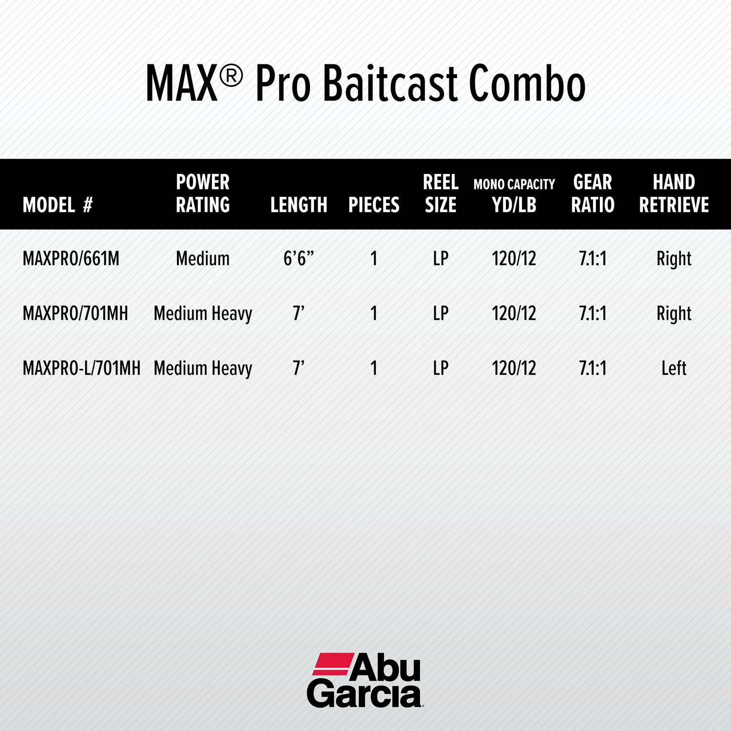 - ABU GARCIA MAX PRO 7a FISHING ROD AND REEL BAITCAST COMBO: Experience better-than-ever Abu Garcia engineering for MAXimum performance.
