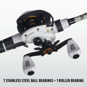 – 8 TOTAL BEARINGS: 7 stainless steel ball bearings plus 1 instant anti-reverse bearing provides smooth operation for any fishing experience.