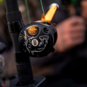“Born from the C3 round reel platform, the Ambassadeur Catfish Special fishing reel offers anglers a unique package backed with proven components designed specifically for catfish fishing. Performance starts with 3 stainless steel ball bearings + 1 roller bearing system and a smooth and consistent Carbon Matrix drag system. The 6-pin centrifugal brake delivers controlled casting while the extended bent handle with power knob gives anglers additional torque and power for hard-pulling fish. The synchronized level wind system ensures even line lay and a smooth retrieve. Custom color and graphics.