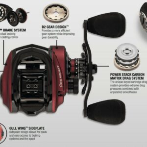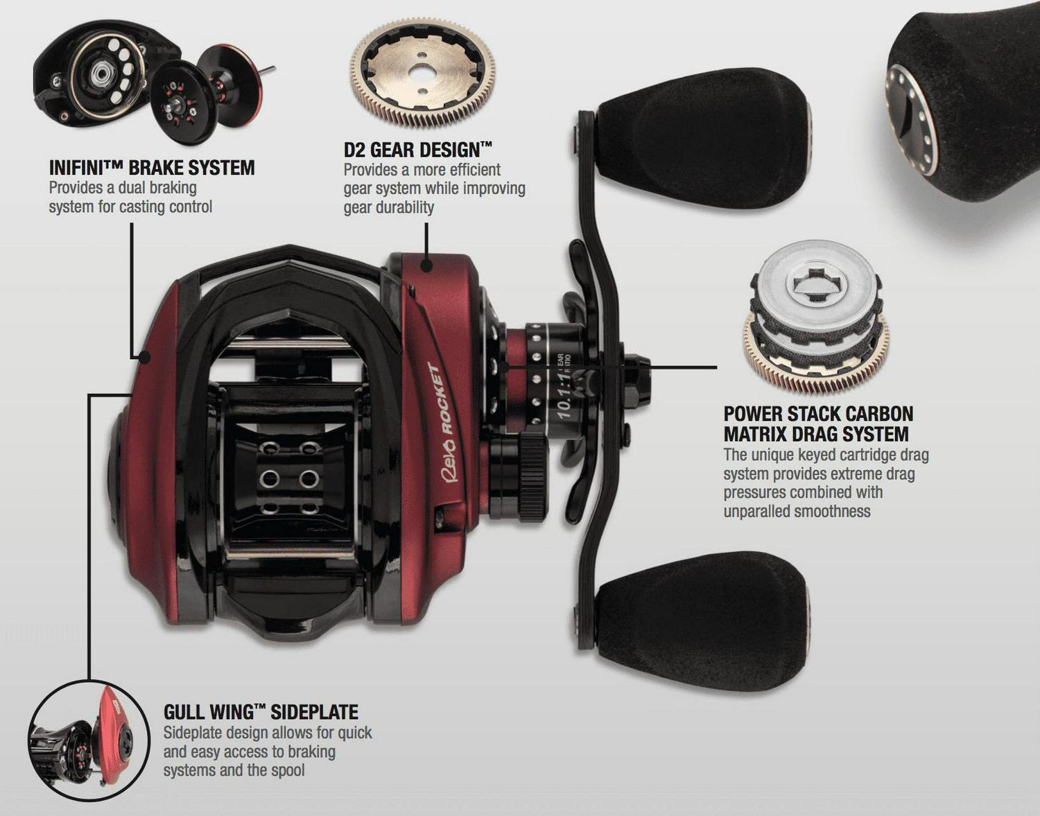 The Revo Rocket low profile reel packs a punch of Speed, Strength, and Power. The 10.1:1 gear ratio providing 41 IPT and Power Stack Carbon Matrix Drag System makes this reel perfect for fast techniques and heavy cover.