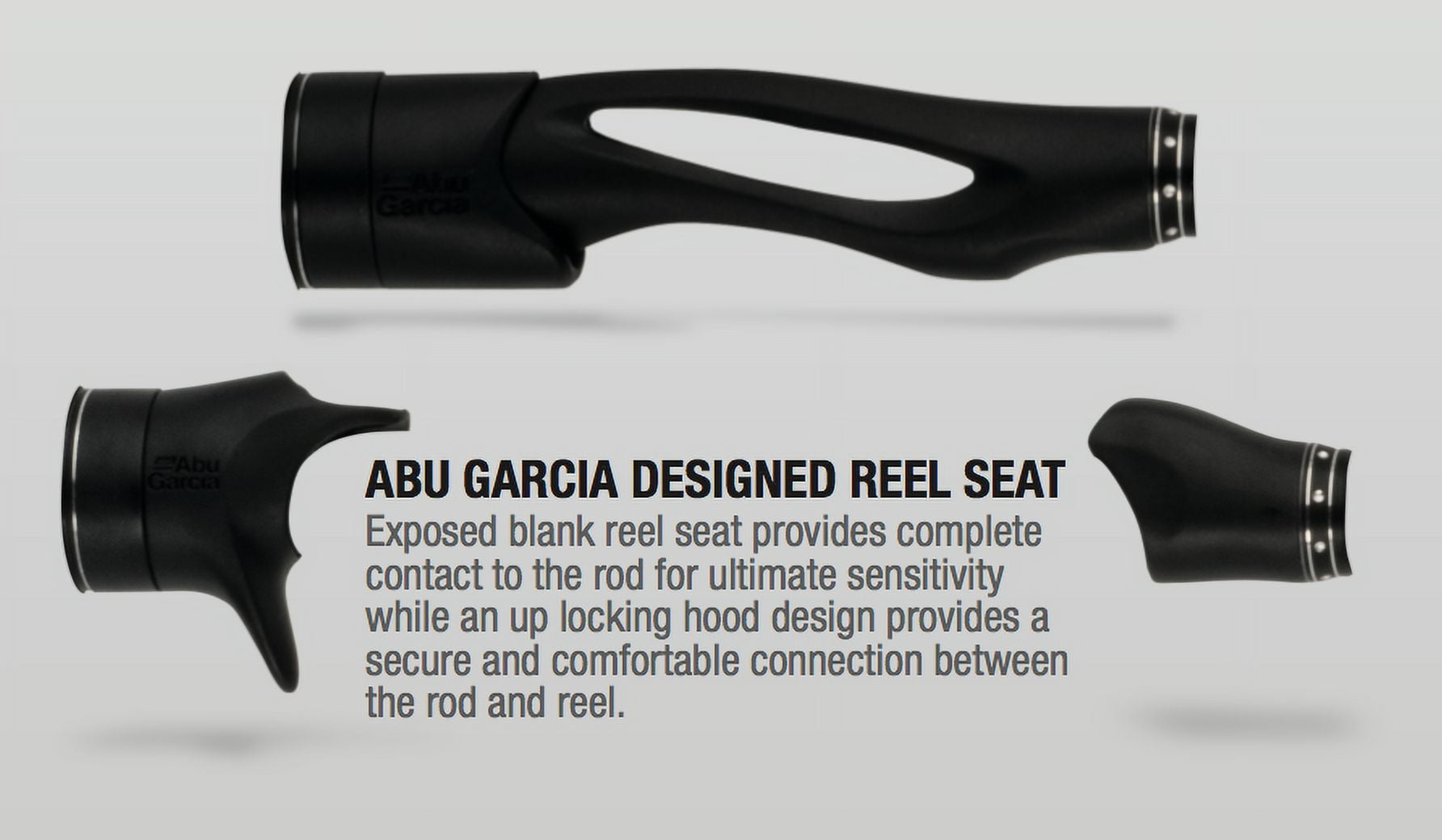 The Abu Advantage: 30 ton graphite for a lightweight balanced design Sublayer Armor? with high strength fibers for exceptional durability and hoop strength Up locking ratcheting reel seat for a comfortable and secure fit ROCS? (Robotically Optimized Casting System) Guide train for maximized casting distance with lighter lures Titanium alloy guides with ultra light Zirconium inserts allow for a lightweight balanced rod High density EVA gives greater sensitivity and durability Abu designed hook keeper for all bait applications Limited 3 year warranty Abu Garcia Designed Reel Seat Exposed blank reel seat provides complete contact to the rod for ultimate sensitivity while an up locking hood design provides a secure and comfortable connection between the rod and reel.