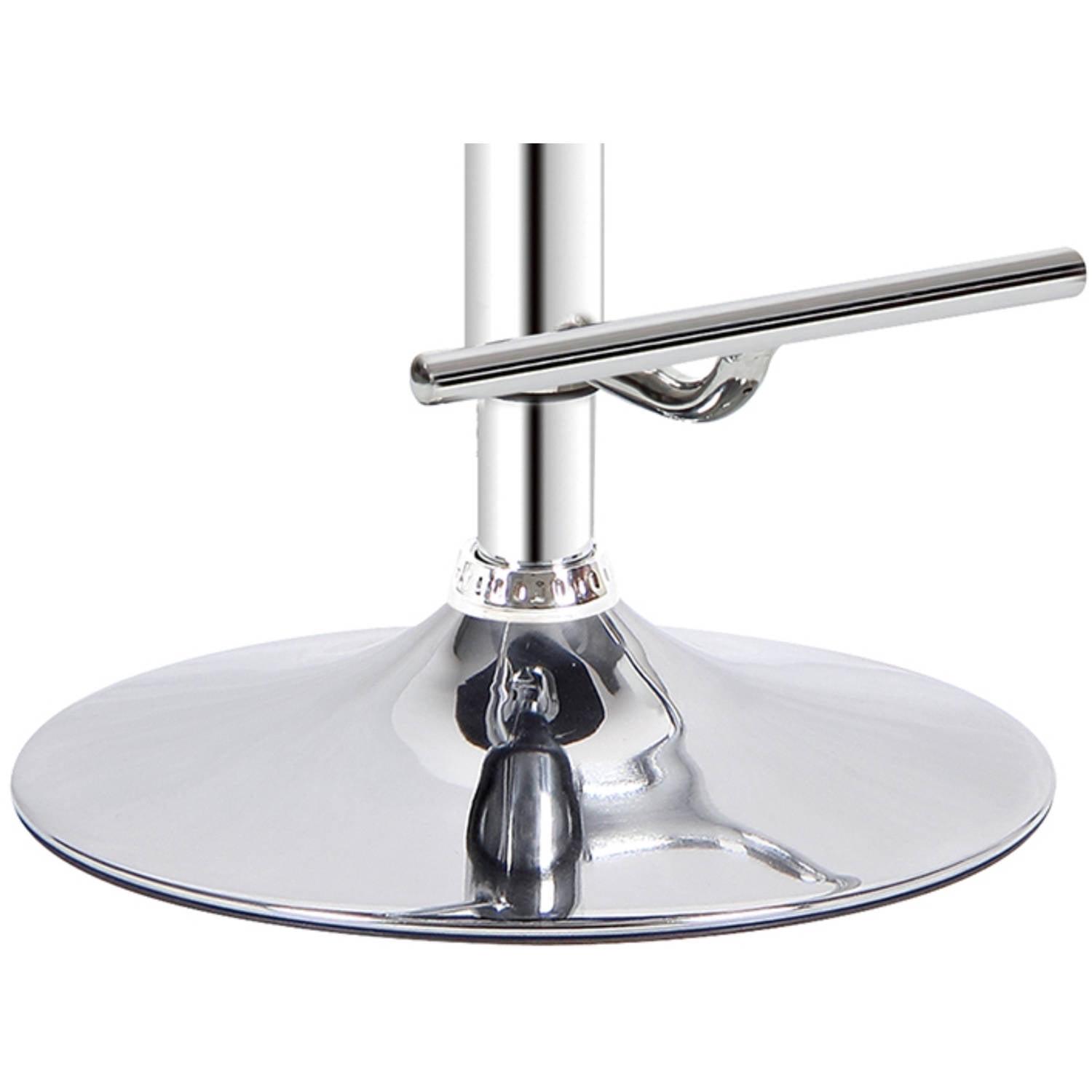 – Built to Last: Barstool uses a metal pedestal base. A polished chrome foot rest adds to sturdy seating.