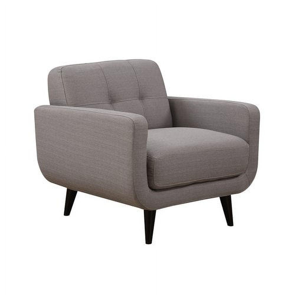 – Clean Lines, Beautiful Curves, and a Carefully Tufted Back Cushion make the Mid Century Arm Chair the Perfect Fusion between Modern and Classic Style. Rich Espresso Legs are an Immaculate Finishing Touch.