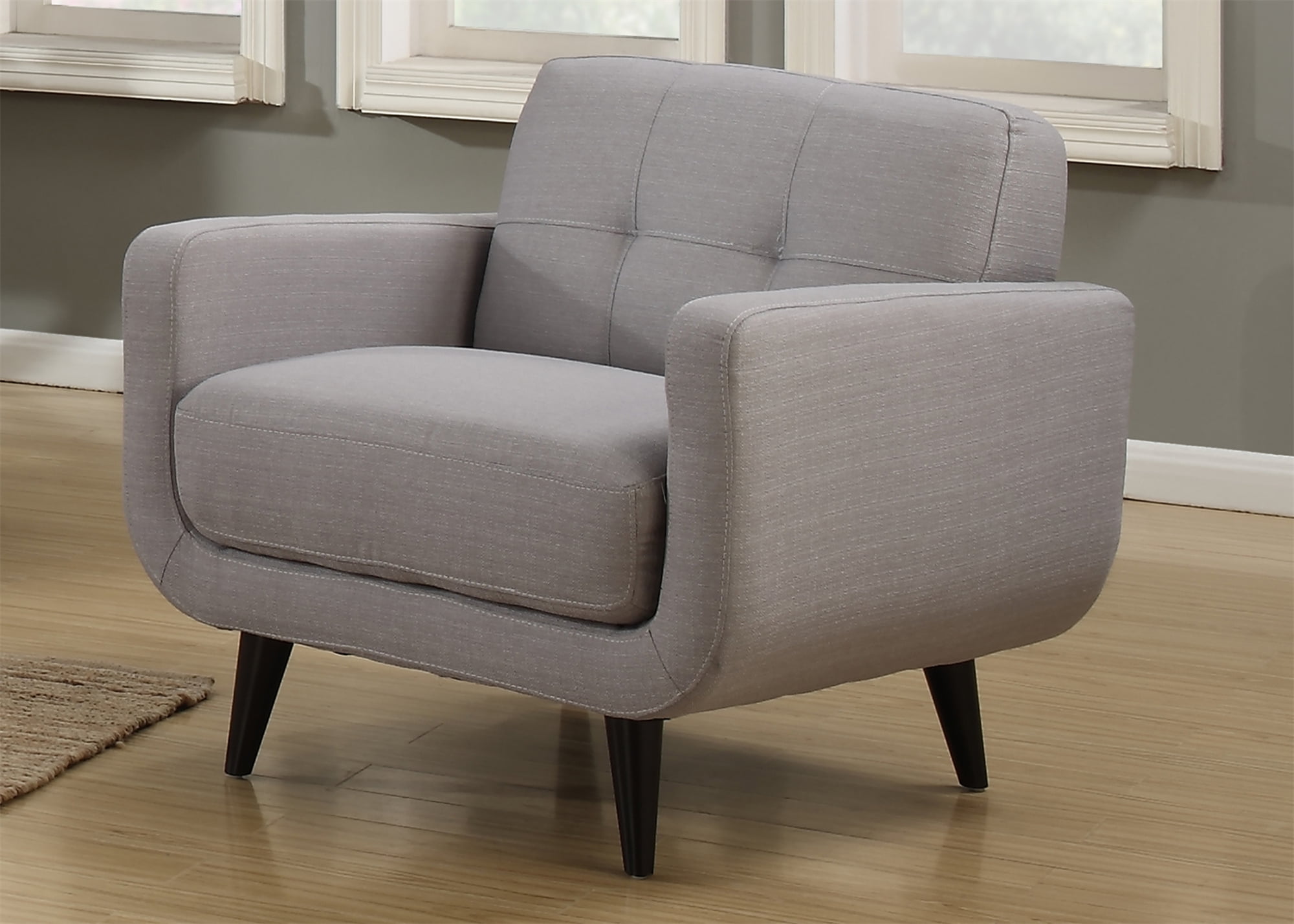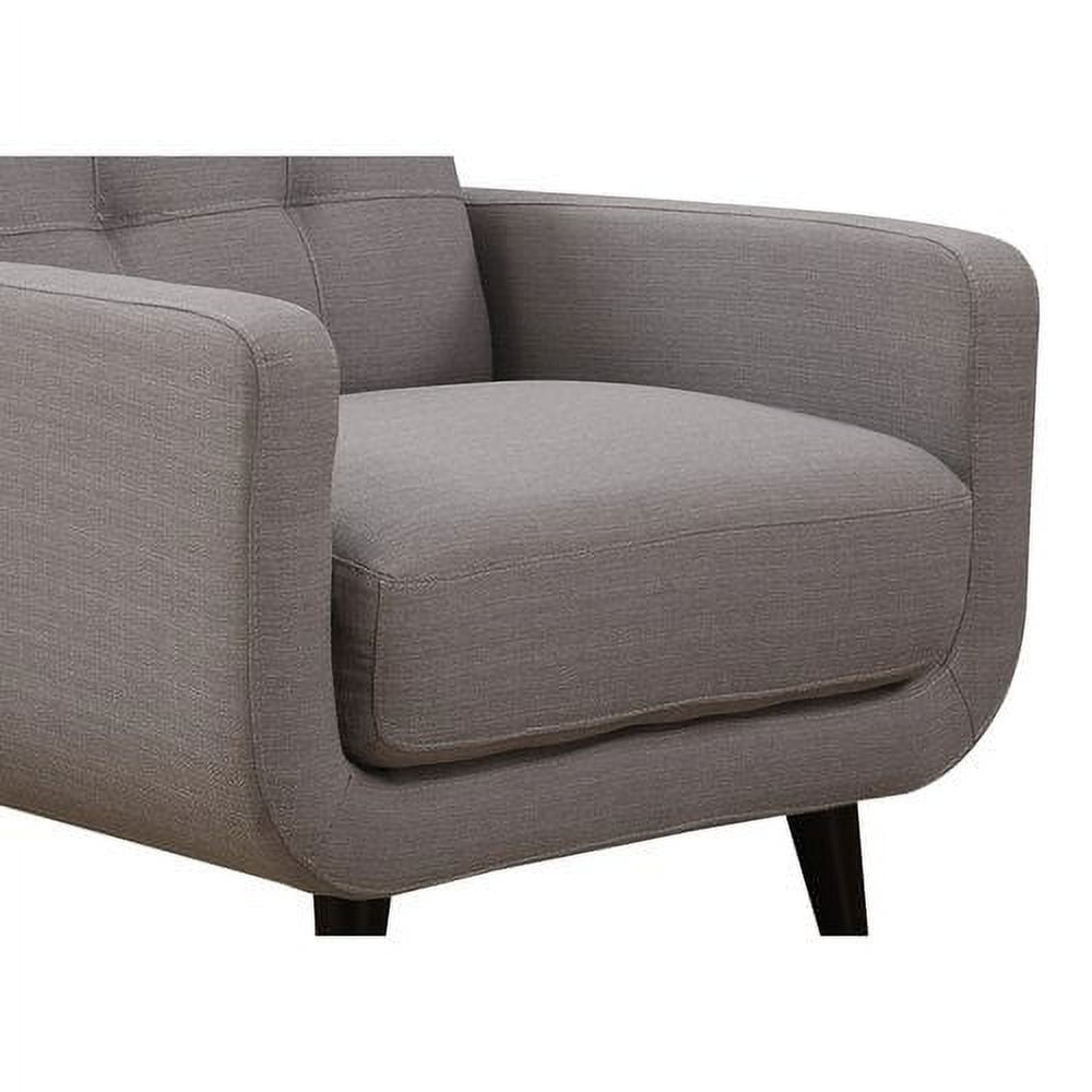 The Arm Chair Measures 35″ X 35″ X 34″ and Weighs 51 Lbs. Arrives with Only Minimal Assembly Required. With a Beautiful Mid-Century Modern Design, the Gray Arm Chair will be the Focal Point of your Living Room, Media Room, Office, or Any Room You Place it in. Everyone will be asking Where You got this Piece, that Comfortably Seats 2. Clean Lines, Beautiful Curves, and a Carefully Tufted Back Cushion make the Mid Century Arm Chair the Perfect Fusion between Modern and Classic Style. Rich Espresso Legs are an Immaculate Finishing Touch. Expertly Crafted from Select Hardwoods and Upholstered in a High Quality Polyester Blend, the Modern Arm Chair is an Exceptionally Durable Piece. Easy to Maintain, the Chair can be Spot Cleaned. Chair: 34″ H x 35″ W x 35″ D
