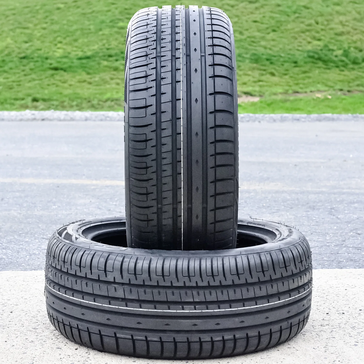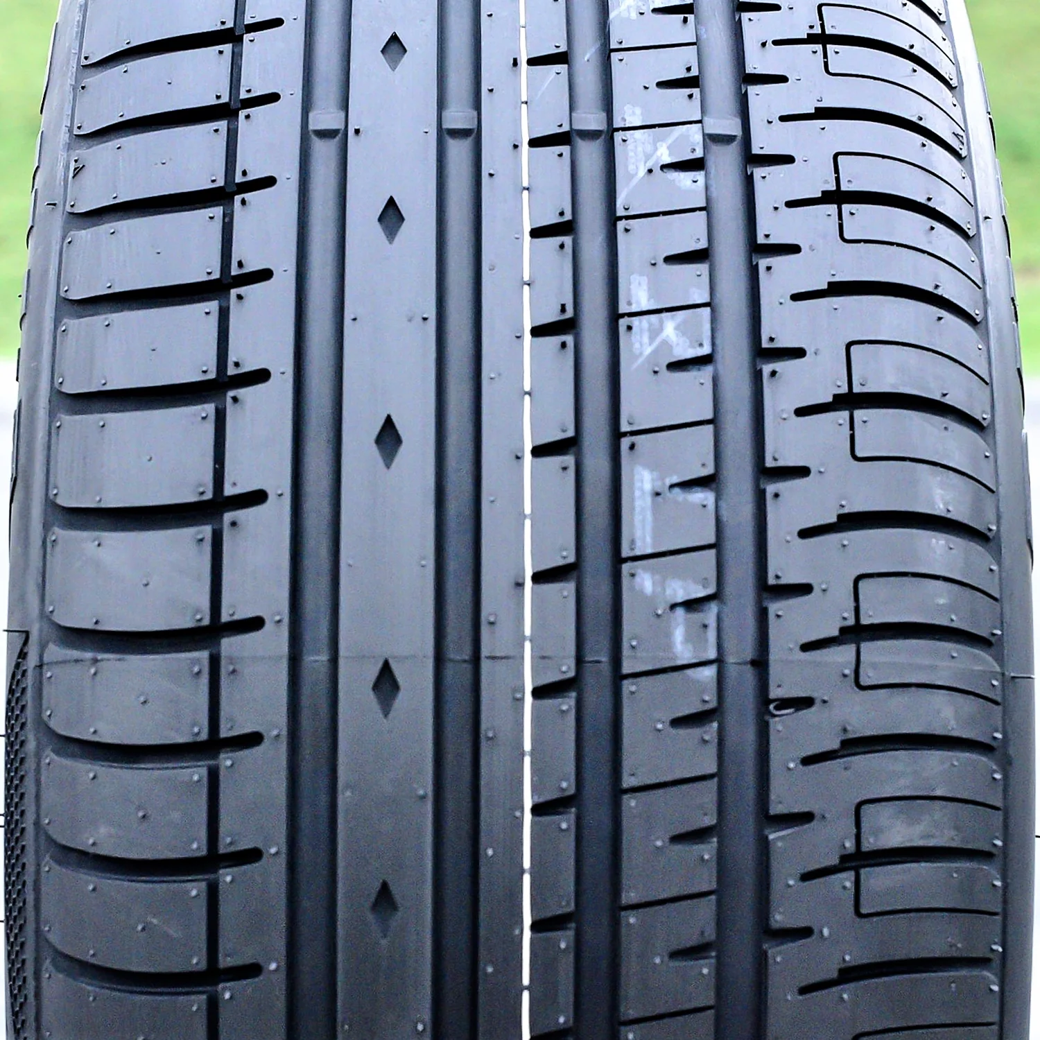 Attention! Due to the size of the tires, Packages might be SEPARATED in the courier facility and not be DELIVERED on the SAME DAY, even though we do ship them together. Tracking information can be checked by logging on to the courier website with the master tracking number you will receive via email. For example, you can receive 3 tires in one day and the 4th one the next day or the day after, or one tire in one day and the second one day after. We understand that this is a big inconvenience for our buyers, however, this is ABSOLUTELY out of our control. Accelera Phi-R FEATURES AND BENEFITS All weather traction Reduced fuel consumption Precise steering responsiveness Reduced road noise levels OVERVIEW The Accelera Phi-R is a performance and high performance, depending on the speed rating of the specific tire size, all season tire made for passenger vehicles and SUVs. This model offers excellent all weather road grip and its traction is superb in dry, wet and winter weather. The tread elements and the tire compound work together to boost the year round traction and to maintain tire tire’s flexibility even in colder temperatures.The tread grooves help make the driving experience safer by channeling water and slush from below the footprint of the tire, thus avoiding dangerous hydroplaning. The tire has a lowered rolling resistance thanks to the reduced weight of the tire. This contributes to two enhancements. Firstly, the lowered rolling resistance decreases the fuel usage of the vehicle, as it does not need a lot of energy to keep the tire in motion. Secondly, it slows down the tread wear rate of the tire, as the driving pressure is eased off of the tread. These aspects make the tire more economic and environmentally friendly. Even at high speeds, this model performs exceptionally well. The improved driving stability of the tire and its precise steering responsiveness provides extra safety. The tire is easily controlled and it responds to the commands of the driver quickly and precisely. The upgraded cornering ability and power also boost the high speed driving safety of the tire. The tire grips the road and provides first-rate traction in cornering and maneuvering situations. The Phi-R is a quiet and comfortable tire. The road noise heard in the cabin of the vehicle is reduced by the additional sipes in the tread pattern which channel the soundwaves through the model’s footprint, making an enjoyable driving experience. Manufacturers recommend changing tires every 10 years. As long as tires are properly stored before they are sold, the year of their manufacture will not shorten their service life.