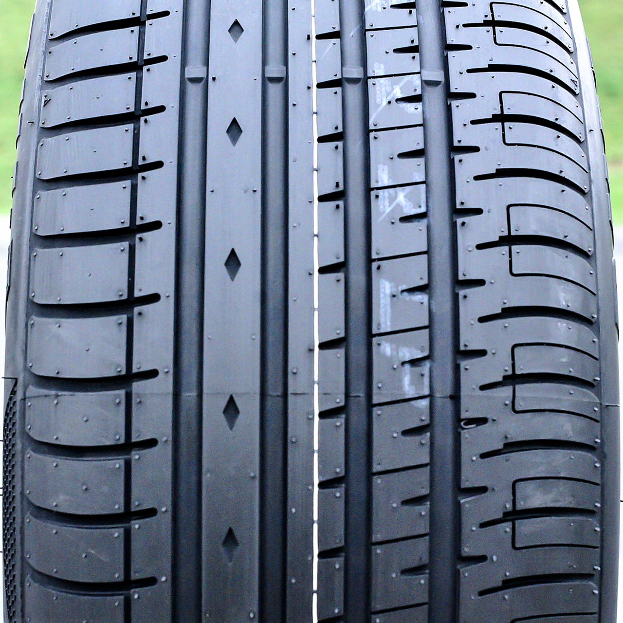 The special tread pattern and tire compound improve the dry, wet and winter weather traction and provide excellent road gripping ability in all weather conditions. These elements greatly update the grip the tire has on the road surface during its performance. The circumferential tread grooves prevent hydroplaning by eliminating water and slush from below the tire footprint. This makes the tire safer to use in all weather situations.