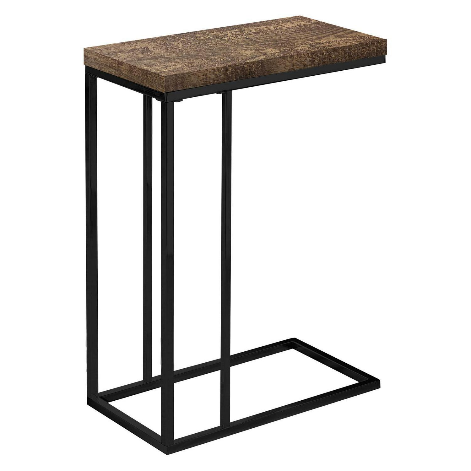 For a brilliant home upgrade, this brown reclaimed wood look C shape side table does the trick. Supported by an elegant black metal base, the end table is made for anything from snacks and drinks to your laptop, tablet and even decorative accents that complement the rest of your decor. Bringing a modern touch to your small home, condo or apartment, this C table slides nicely under the couch or bed. Study session Favorite movie Quiet reading time This side table handles all of the above.
