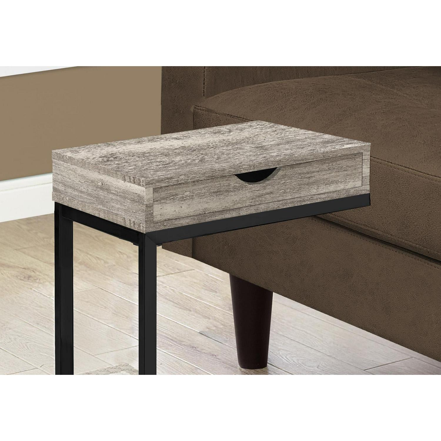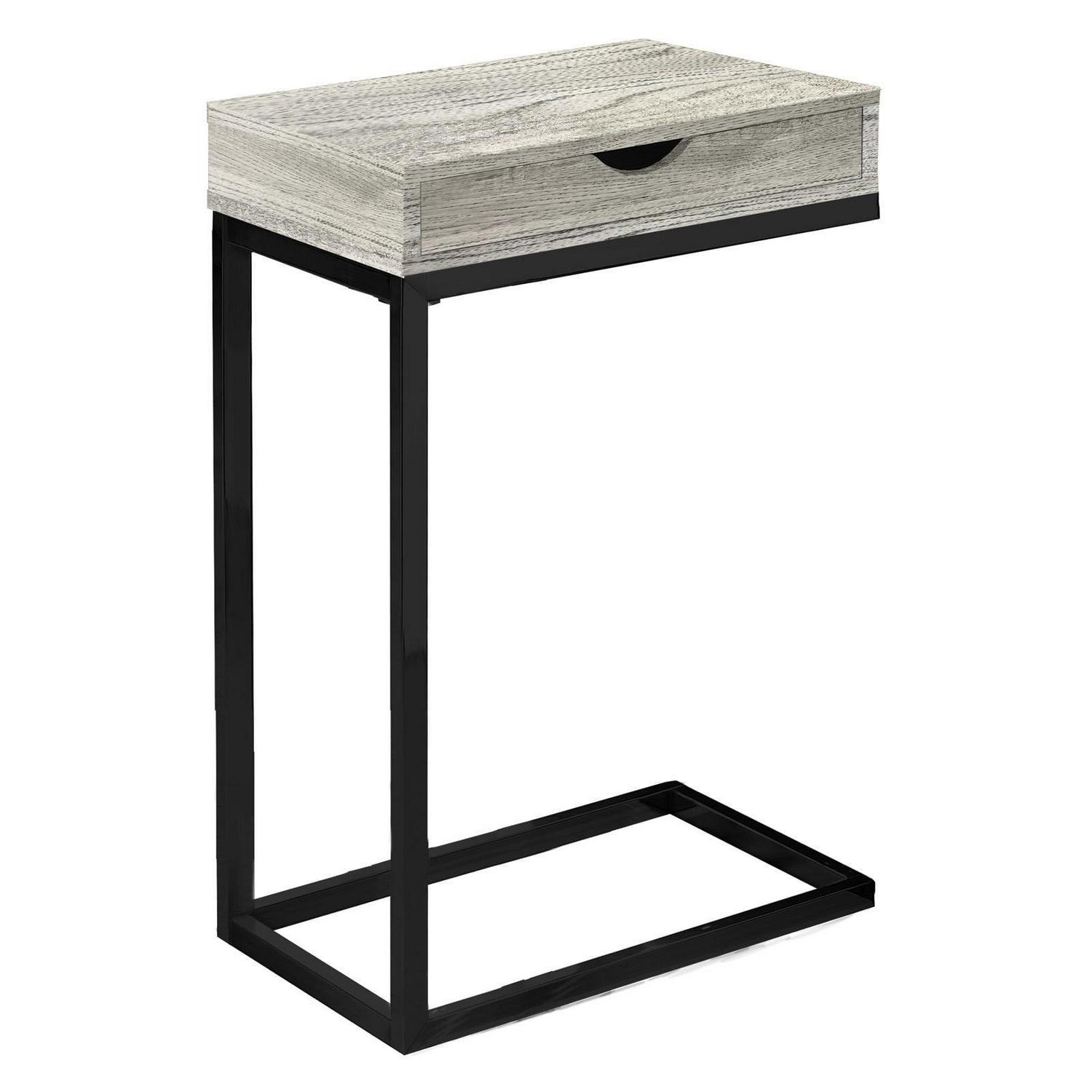 Accent Table, C-Shaped, End, Side, Snack, Storage Drawer, Living Room, Bedroom, Metal, Laminate, Grey, Black, Contemporary, Modern