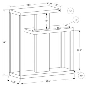 Enhance your living space with this beautifully crafted rectangular dark taupe wood-look hall console table finished on all sides. Featuring clean lines and a three tiered open concept design, this modern style console is perfect for dressing up any wall in your home or displaying your favourite decorative items.