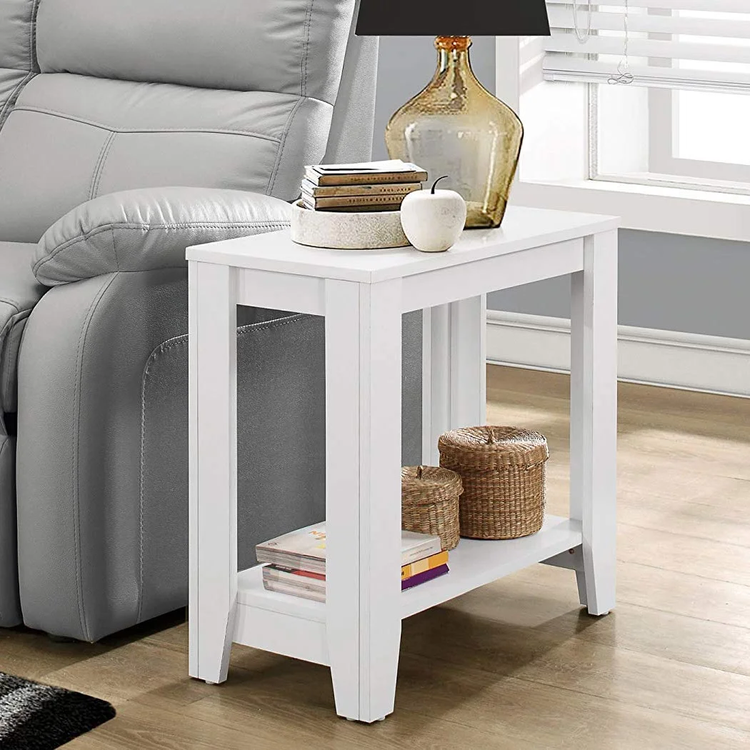 Add that perfect finishing touch to your living room, office space, den, study, or family room with an accent table that is as versatile and attractive as it is useful with the Monarch Specialties Contemporary Accent End Table. Enhance your living space with this white rectangular side table. Featuring ample surface area and a two-tiered design, this accent table is perfect for a lamp, displaying a picture frame or your favorite decorative pieces. The sturdy tapered legs and elegant white finish on all sides will add warmth to any room in your home. A versatile must-have accent piece for any space in your living room, family room, or office. Ready to assemble in 60 minutes or less, take your living room to the next level with the Monarch Specialties Contemporary Accent End Table.
