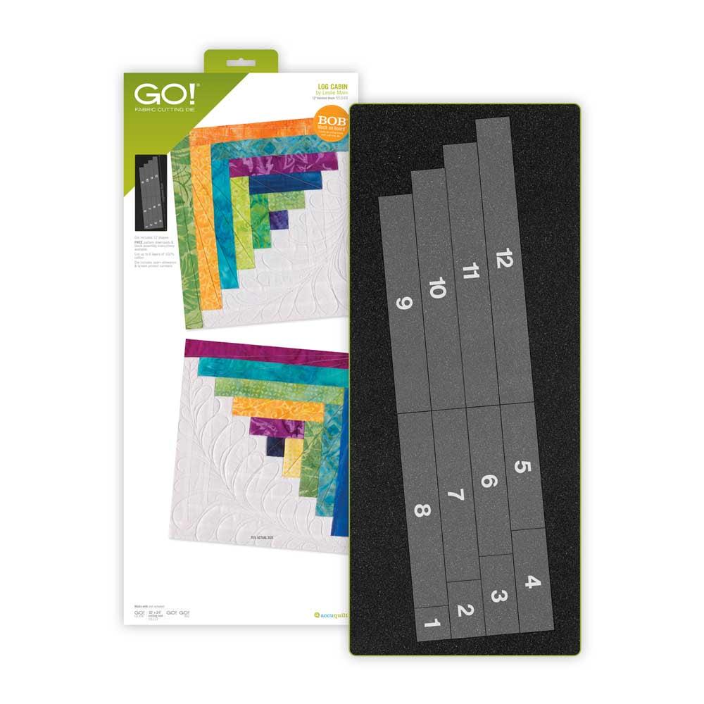 ACCUQUILT-GO! Fabric Cutting Die. The GO! Die collection features dies that work together to create typical 9 inch finished patchwork quilt blocks. The simple mix and match system helps quilters easily identify shapes needed for many traditional quilt patterns. This package contains Log Cabin: one die that cuts twelve shapes (12 inch finished size). Imported.