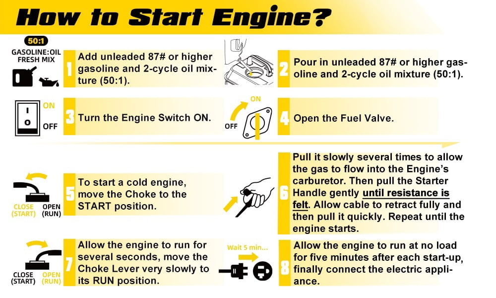Aceup Energy 1200W Gasoline Powered Portable Outdoor Generator is a versatile solution for all your portable power needs.Whether for emergency home power, construction site power, camping, road trips, tailgating, or festivals, this generator is designed to provide easy and reliable power wherever you go. The Aceup Energy Gas-Powered Portable Generator is built to last. With a powerful 71cc, 2-stroke engine, and a forced air cooling system, it can run for up to 6 hours at half load. Its rugged and durable body design and recoil start to make it the ideal choice for even the most challenging environments. Before operating the generator, we encourage you to read and follow the instruction manual to ensure it’s safe and properly used.