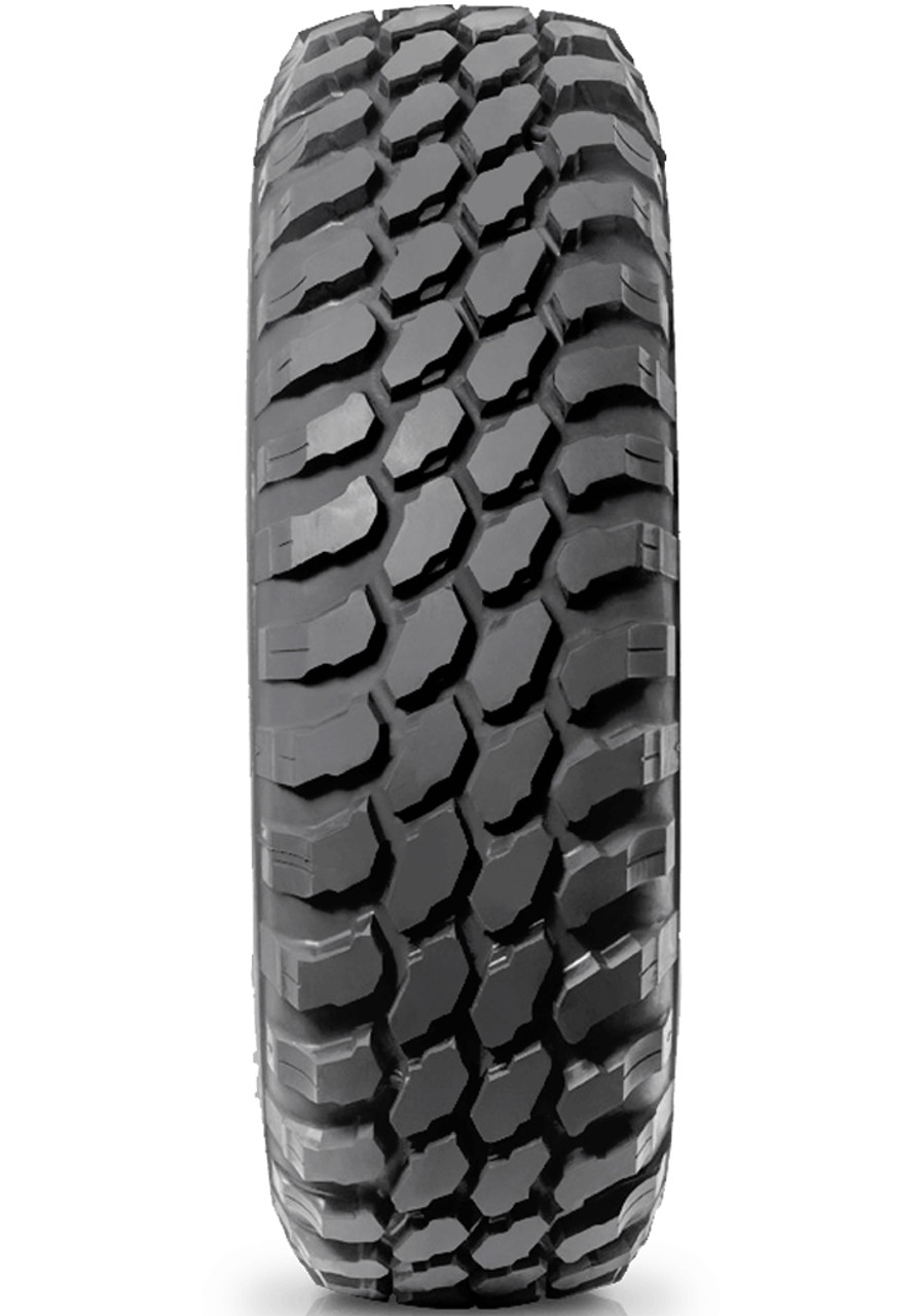 The aggressive tread design ensures the tire’s mud terrain traction. The staggered blocks and high void ratio to enhance the soft, loose, and uneven terrain performance. These tread elements enable the tire to improve the deep mud and loose dirt terrain traction, boosting the forward motion at all times. The tread’s self-cleaning ability keeps the footprint clean at all times, eliminating mud, snow, and rocks stuck between the tread elements. Mud and snow do not ruin the traction by not blocking the surface traction. It also avoids stone retention from harming the casing and damaging the casing.