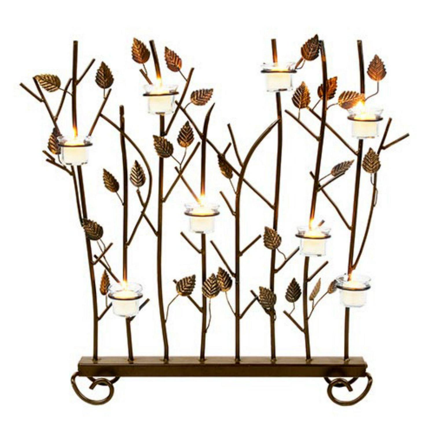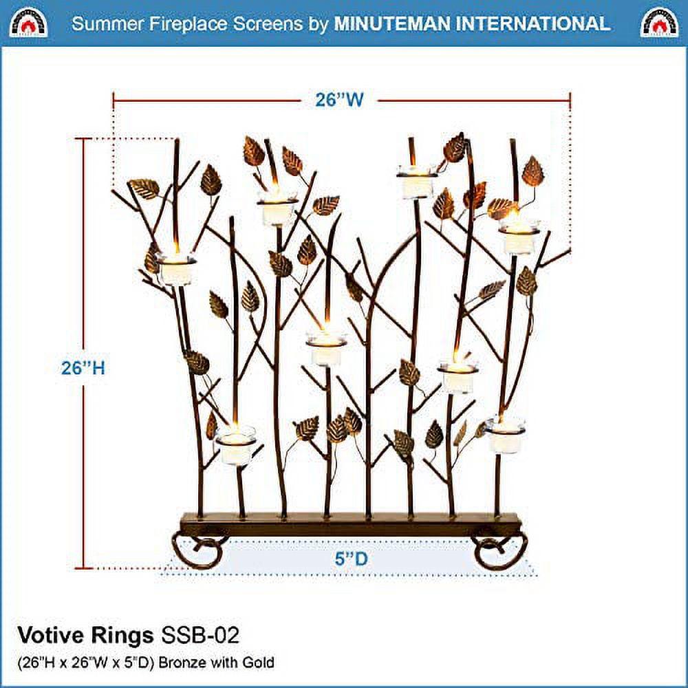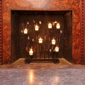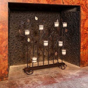 You can enjoy a warm evening firelight on your hearth with the Achla Designs Summer Decorative Fireplace Votive Screen. This screen has an intricate design consisting of a row of leafy branches with eight rings for holding candles and votives. With its wrought iron construction, powder coated finish, and gold accents, this screen can make your spring and summer evenings more delightful. Use the screen both indoors and outdoors, with equal ease.