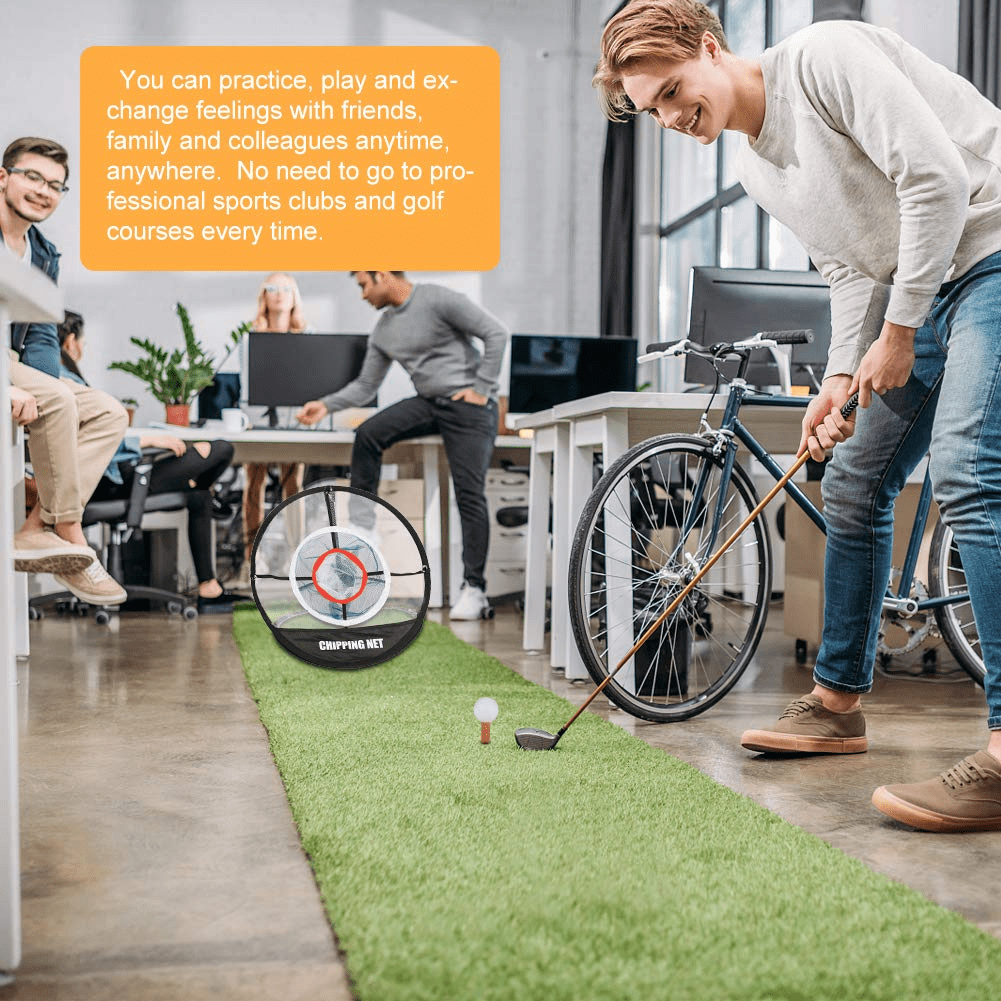 【Premium Material】Golf practice net are made of high-quality fibers and strong nylon nets, with foldable fiber support rods, which are resistant to tearing and impact, resistant to knocks, high stability and not easy to deform. The golf mat uses high-quality turf to simulate the real golf course speed. It is a good choice for golf practice. 【Foldable & Pop-Up Design】Our golf chipping net have an instant pop-up design and a foldable design, which not only allows you to easily complete the installation in a few seconds, makes your golf training more convenient, but also it is equipped with a storage bag, easy to carry and save storage space. When not in use, just bend it from the middle into a No. 8 figure, then fold it in half and put it in the storage bag. Ideal for indoor and outdoor use. 【Improving Your Skills】The design of the three-circle concentric circular net is convenient for you to practice short-distance chipping of different heights, thereby improving the ability of the corresponding skills. This golfing accessories set is very suitable for beginners and repeated contact can make you reach a professional level. 【Non-Slip Golf Mat】Our golf mat has a heavy-duty non-slip EVA bottom design to keep the mat in position, and super grip prevents the mat from moving. The height of the golf putting mat is 0.7 inches. It can be rolled up and stored for easy carrying. 【Perfect Gift for Golf Lovers】The golf training set is very suitable for beginners to practice hitting and chipping. The foldable and instant pop-up design is convenient for you to carry and install, so you can practice, play and exchange feelings with friends, family and colleagues anytime, anywhere. No need to go to professional sports clubs and golf courses every time. Moreover, it can improve golf skills. It is a perfect gift for golf lovers.