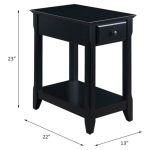 Classic and timeless without being garish. The wooden accent table shows it’s elegant silhouette in a attractive finish. A storage drawer under the table top helps your hide odds and ends around the living area, with a bottom shelf for magazine or decorations display. Every living room needs this lovey complement. Use the Bertie Accent table to set a warm, homey wood tone in your home.