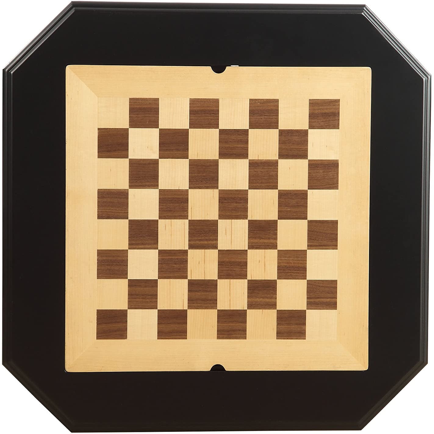 1-piece, square-shaped side game table that can be used for a wide variety of uses Designed with dual drawers, giving users plenty of storage space Equipped with a reversible game board, allowing for checkers and backgammon games Designed with a wooden square top, apron, and drawer Measures (L x W x H): 28 x 28 x 31 inches Wooden pedestal base adds a layer of stability Color: Black Weight: 63 pounds Manufacturer warranty: 1-year warranty