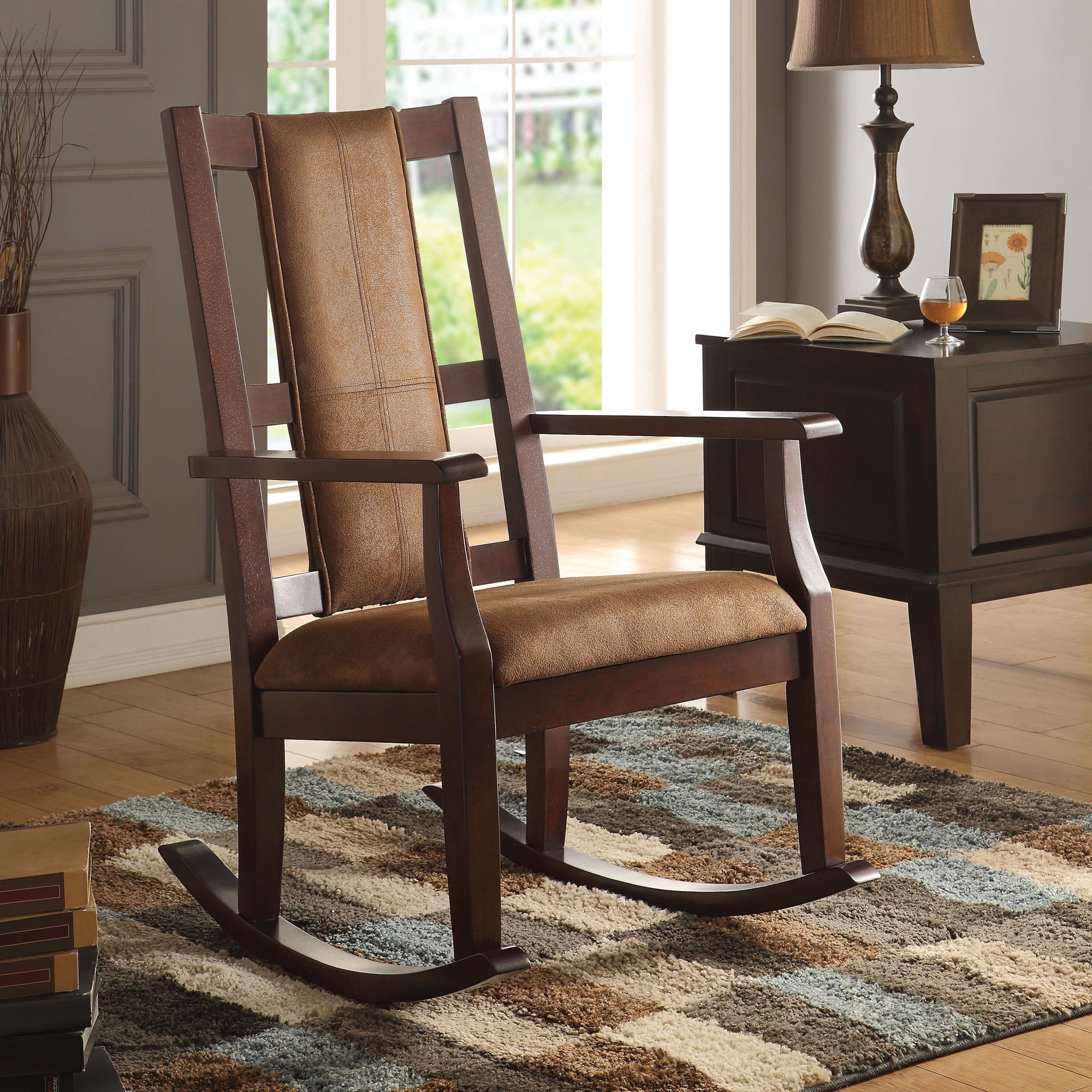 Padded back and seat Wooden track armrest Wooden frame Smooth rocking motion Assembly required