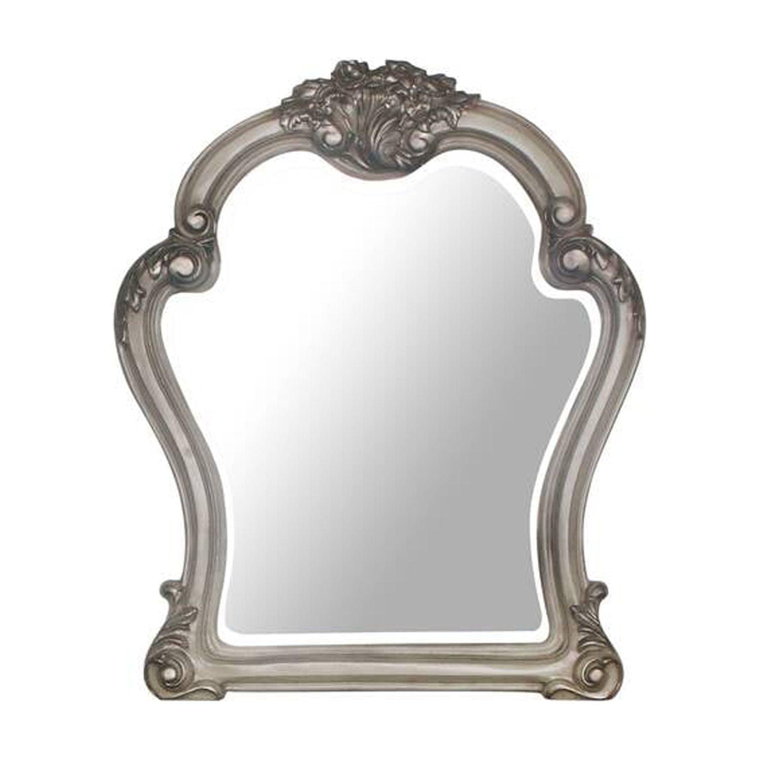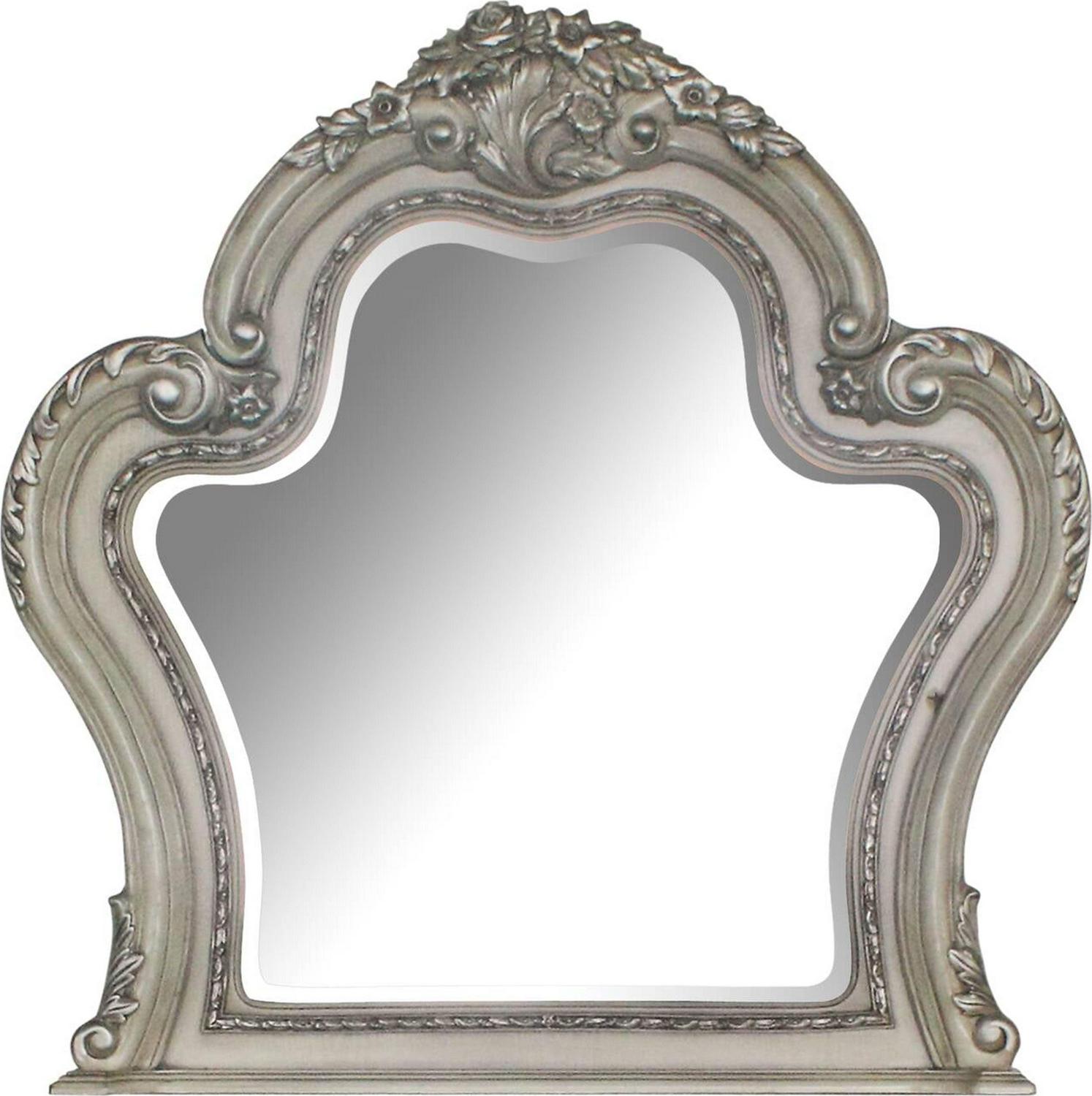 Elegant yet lightheartedly playful, the Dresden Mirror is donned in an amiable Vintage Bone White finish with hand-applied burnish over the many layers of stains and finishes that are manually rubbed on, providing depth and character to this item. Classic ornamental elements of Dresden characterize the mirror by the carefully chosen inlay, plentiful decorative scrolled moldings and arched wooden frame. Use this gorgeous mirror to fill your dressing room with romatic siprit and timeless design.