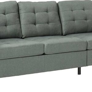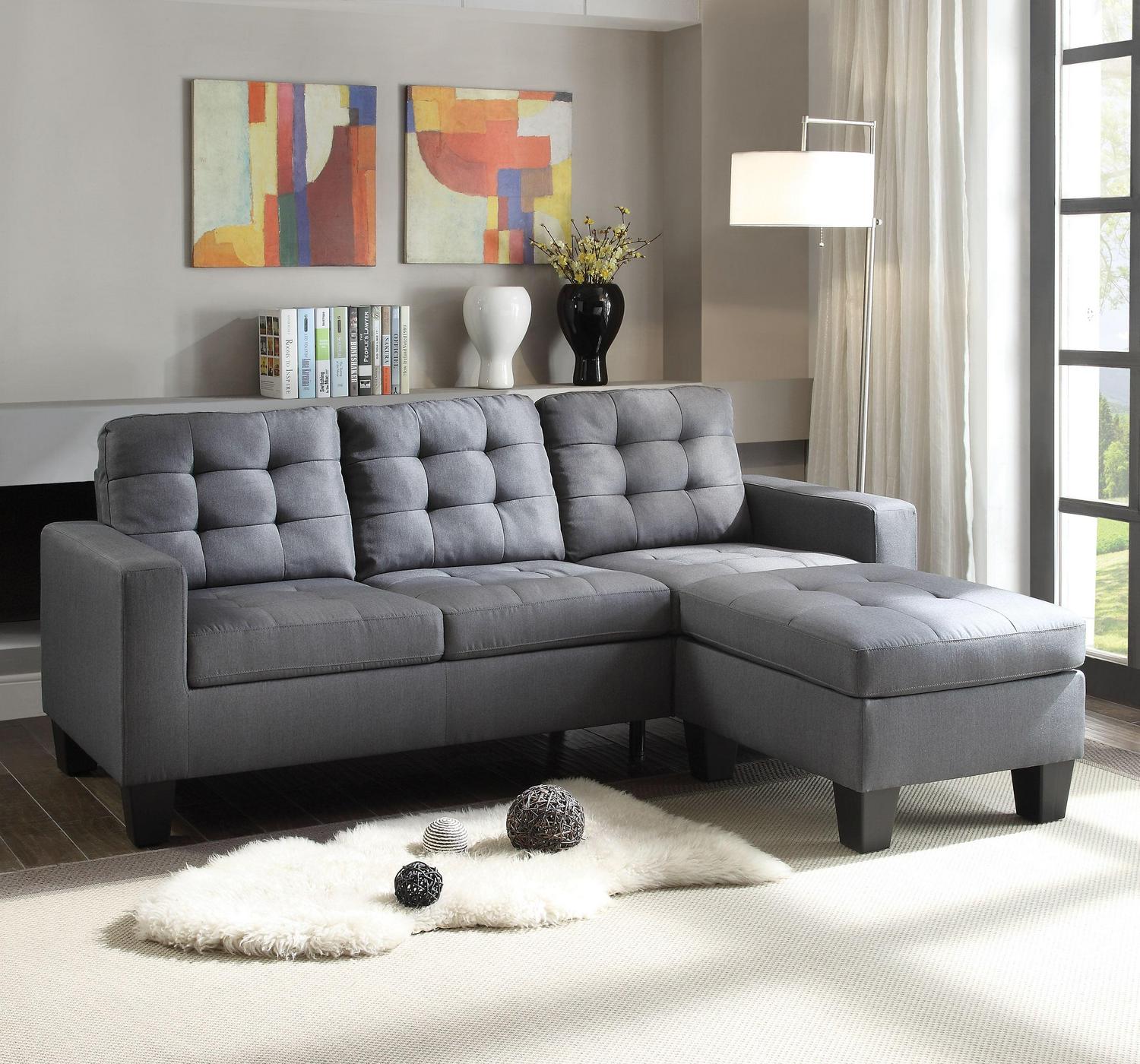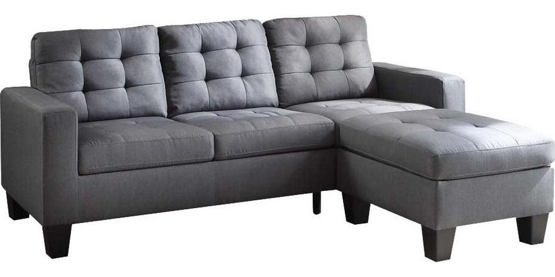 ACME Earsom Tufted Sectional Sofa in Gray Linen Upholstery