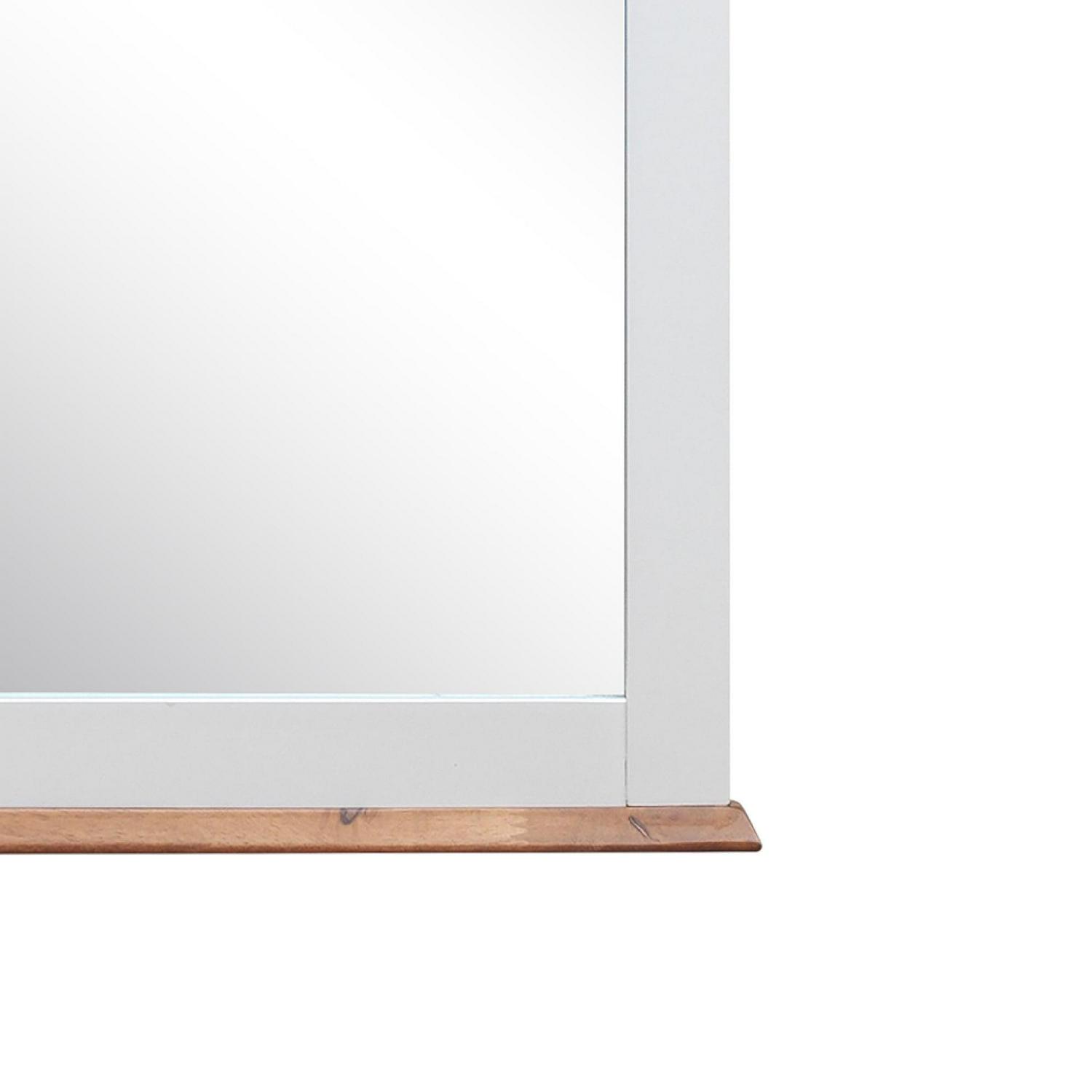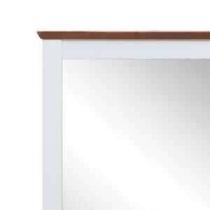 The Farah Mirror is the perfect addition to any child s room. This cottage style mirror is crafted with a timeless look that is an ideal addition to any bedroom. The mirror is accented with an oak top and understated white finish. The mirror s clean line design will go with various styles of case good finishes and will become the focal point in any bedroom. This fashionable mirror will accent your other bedroom furniture, transforming a room from ordinary into something playful and unique.
