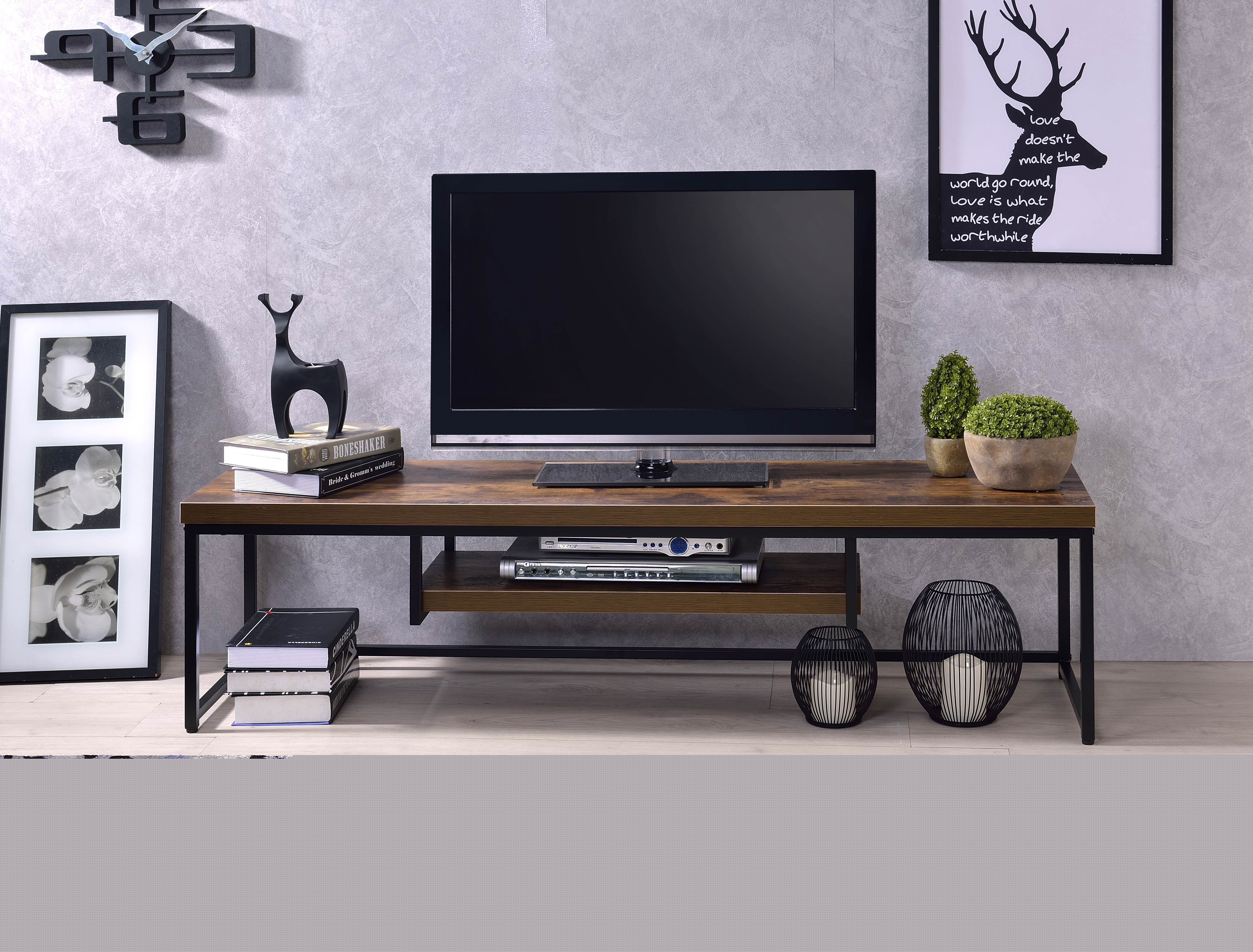 Acme Furniture Beth Weathered Oak and Black TV Stand for up to 60 Flat TV